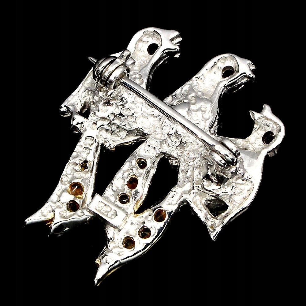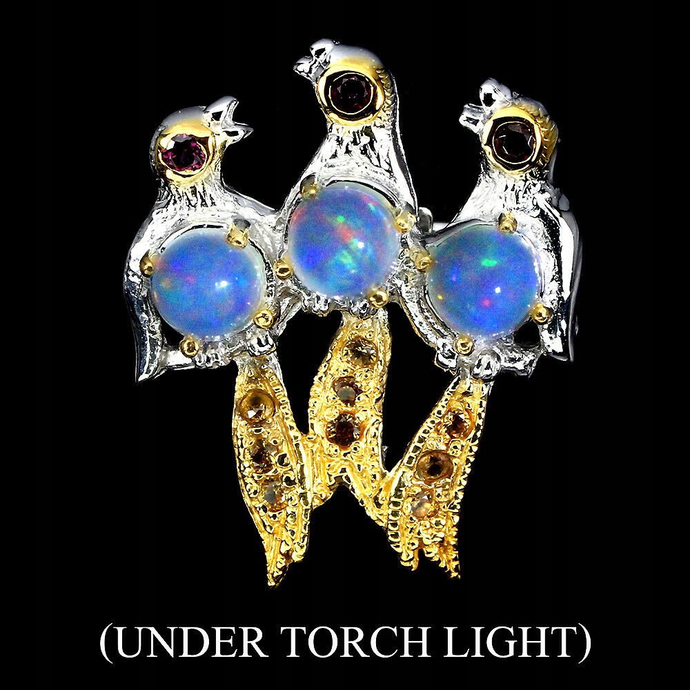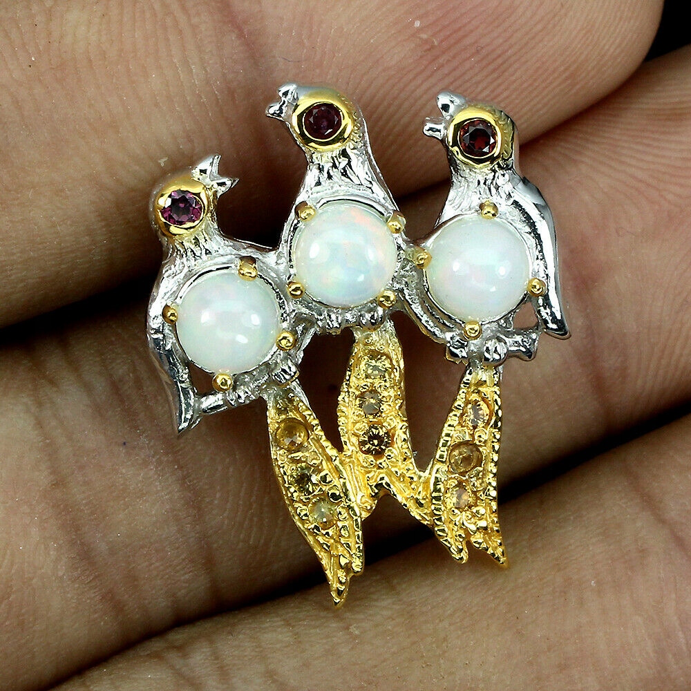 oferujemy Państwu nową, pozłacaną 14K białym i żółtym złotem, srebrną - próba 925 broszkę z naturalnymi opalami ognistymi, szafirami i granatami (rodolitami).