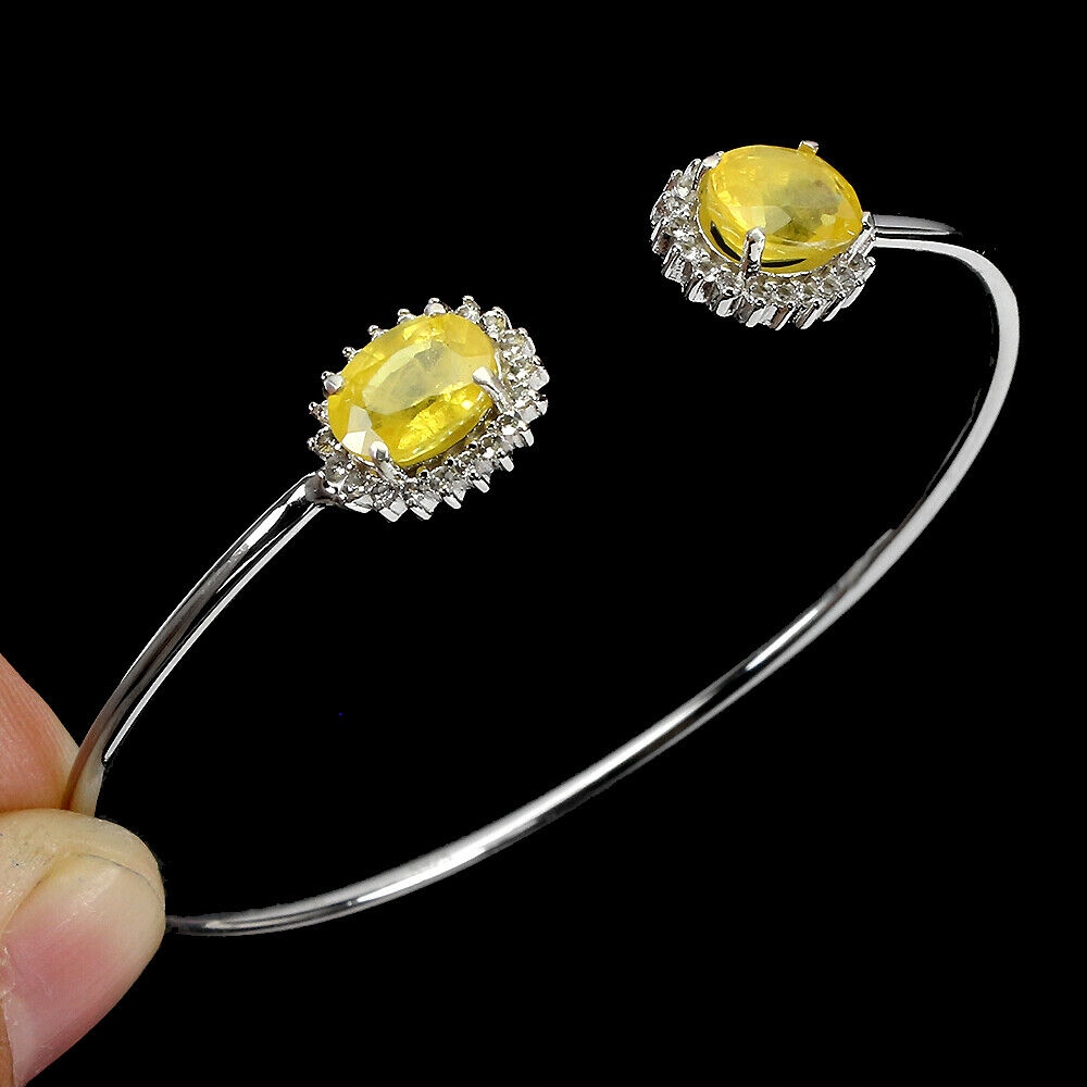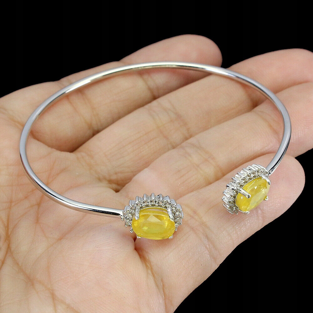 Oferujemy Państwu nową, pozłacaną białym 14K złotem, srebrną - próba 925- bransoletkę z naturalnym żółtymi szafirami i cyrkoniami.