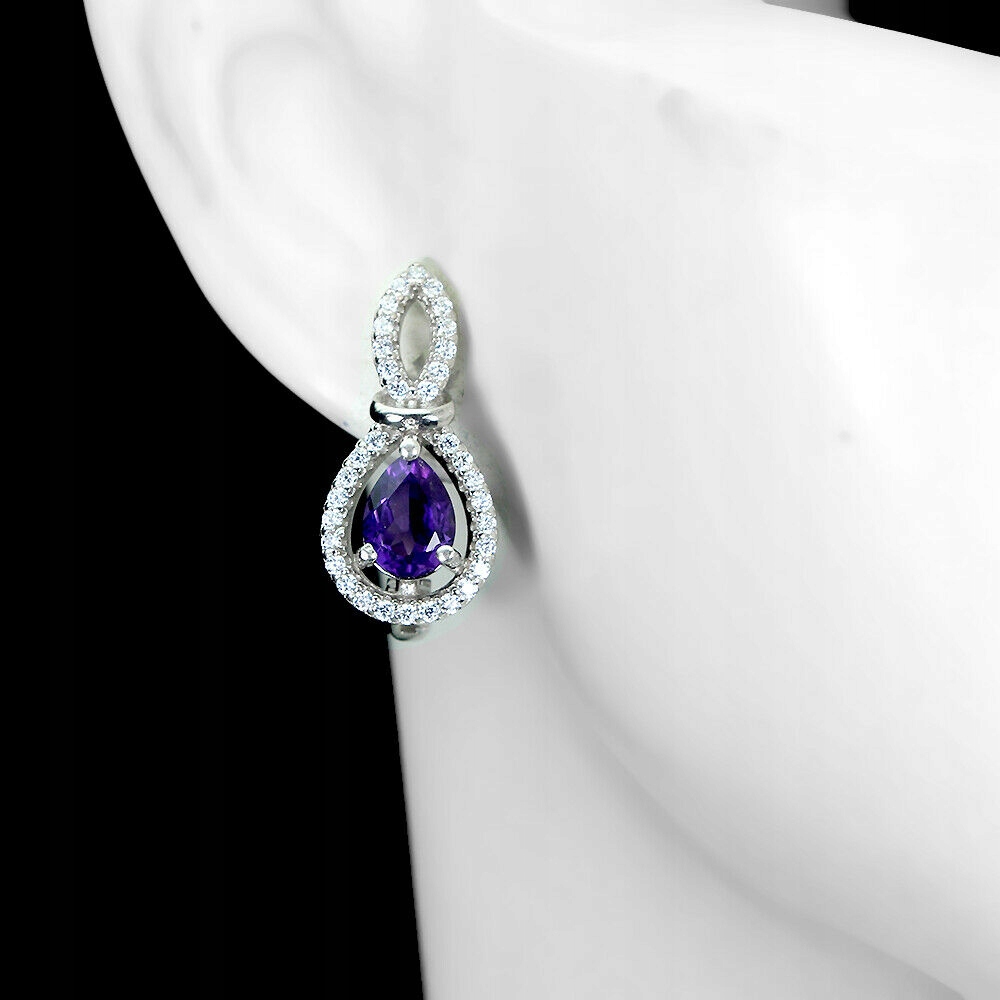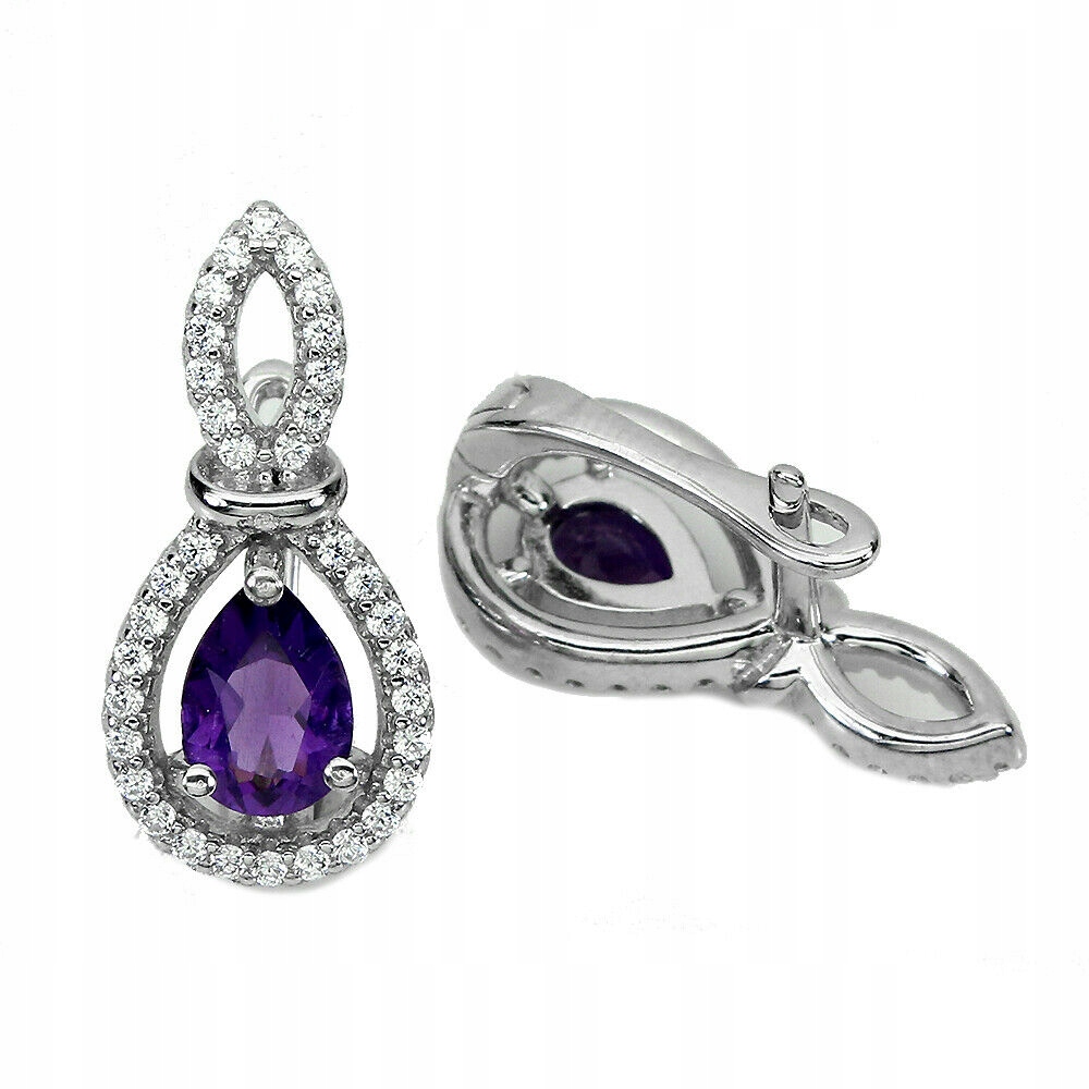 Oferujemy Państwu nowe, pozłacane białym 14K złotem, srebrne - próba 925 kolczyki z naturalnymi ametystami i cyrkoniami.