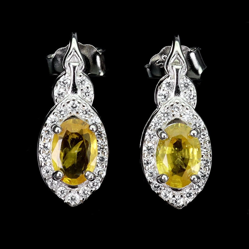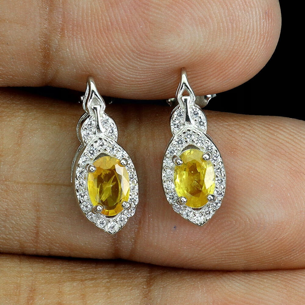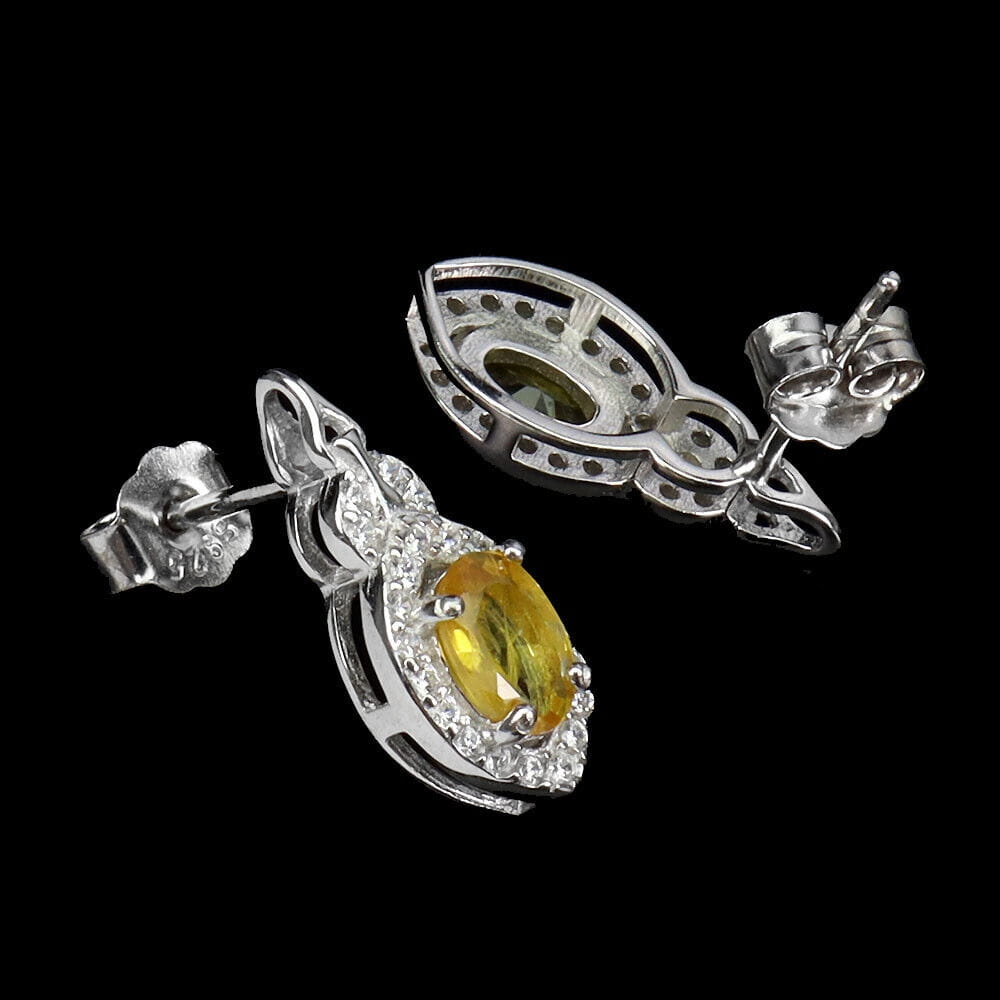 Delikatne kolczyki naturalne szafiry żółte cyrkonie 925 5