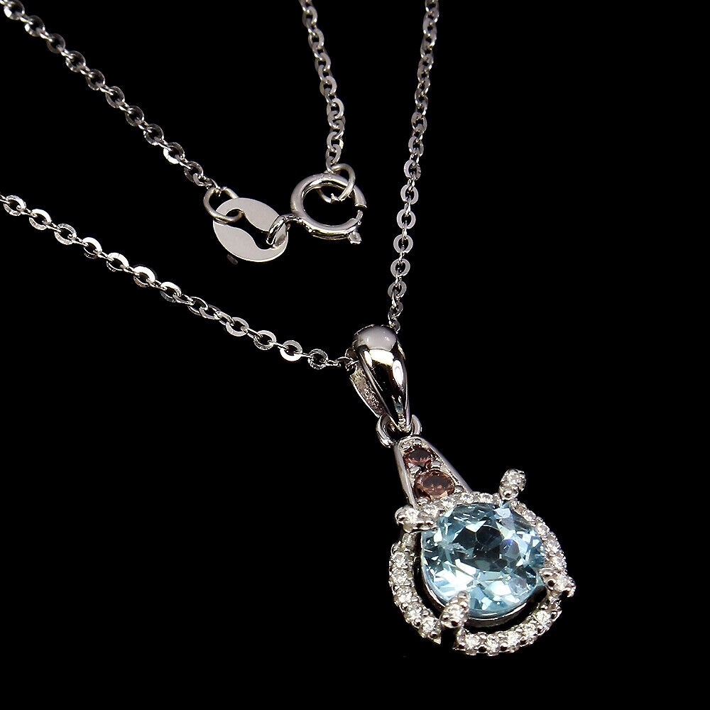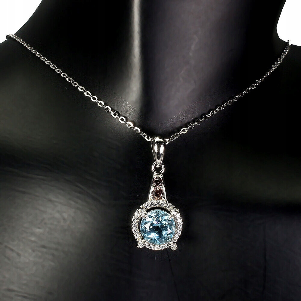 Oferujemy Państwu nowy pozłacany 14K białym złotem, srebrny - próba 925 naszyjnik z naturalnym topazem Sky Blue i cyrkoniami.