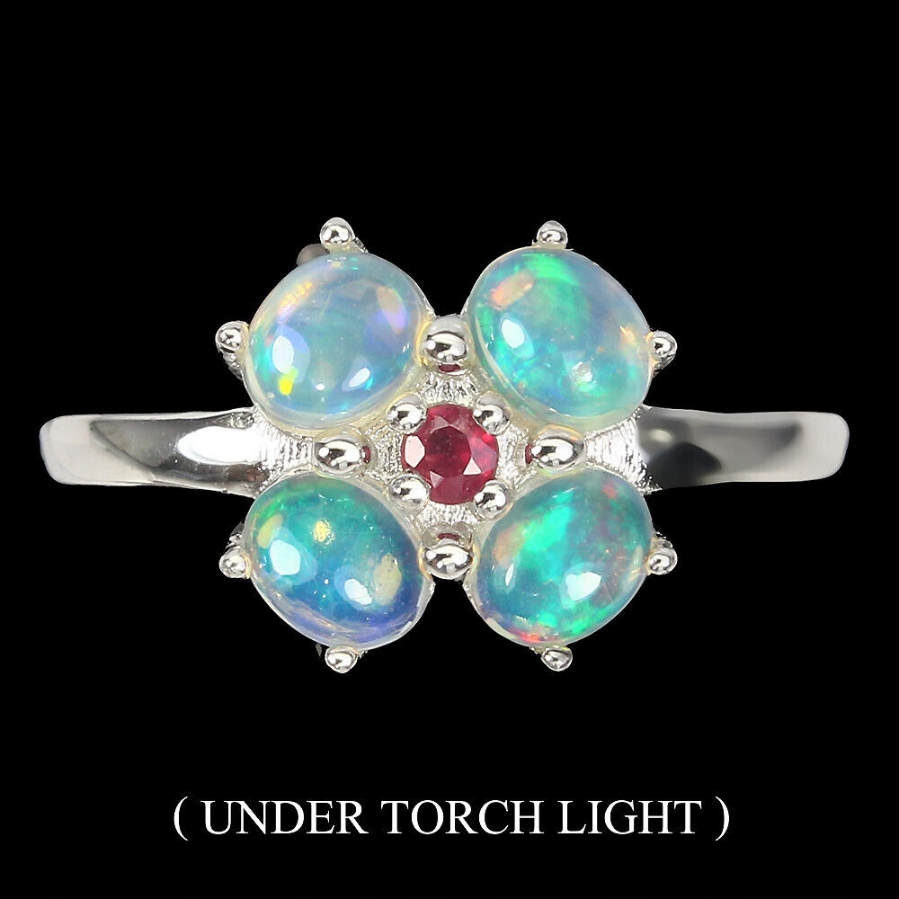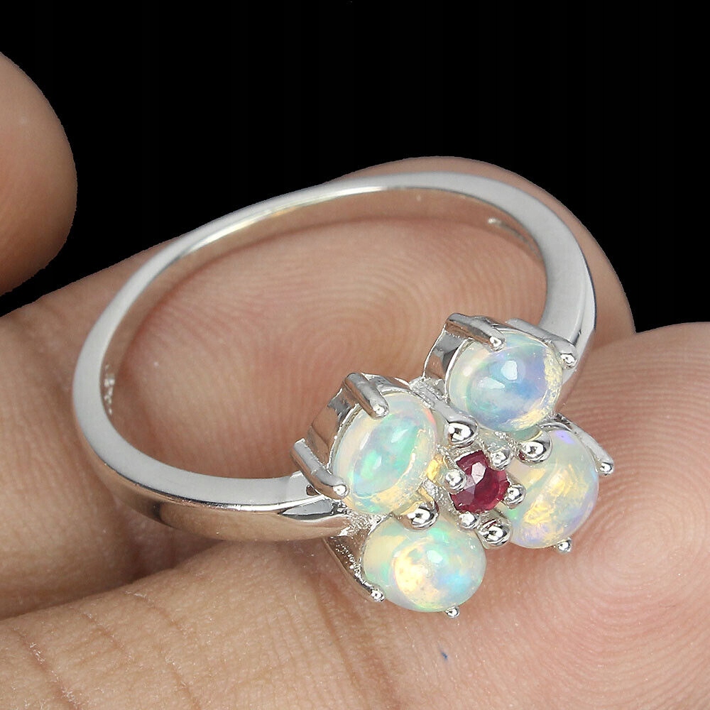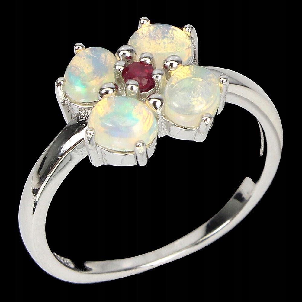 Delikatny pierścionek opale ogniste 925 r 14 rubin