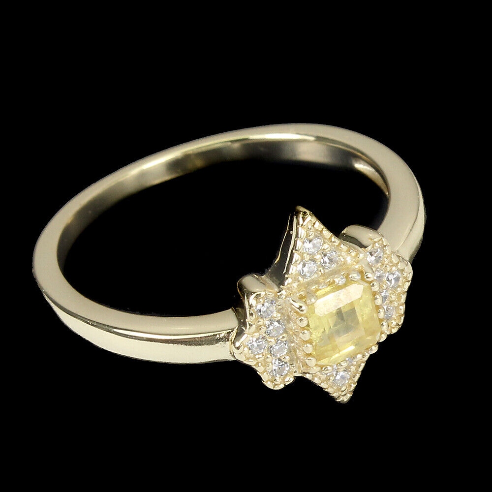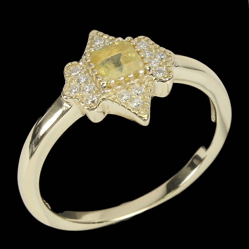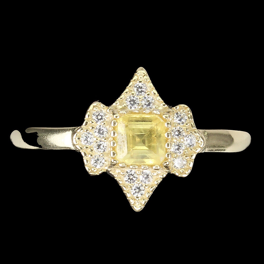 Oferujemy Państwu nowy, pozłacany 14K żółtym złotem, srebrny - próba 925 pierścionek z naturalnym żółtym szafirem i cyrkoniami.