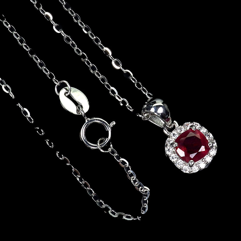 Elegancki delikatny 925 srebrny naszyjnik naturalny rubin cyrkonie