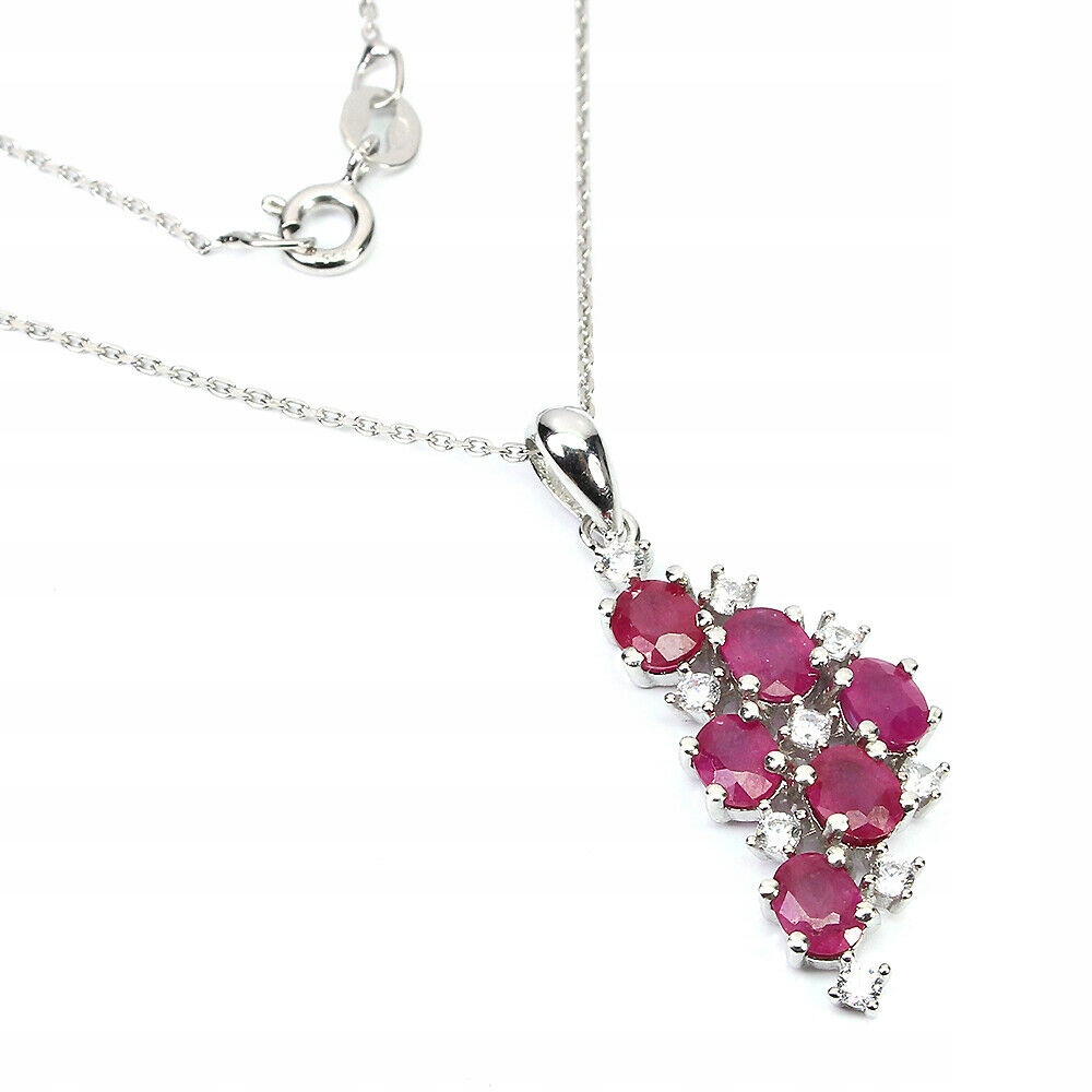 Elegancki srebrny 925 naszyjnik rubiny cyrkonie