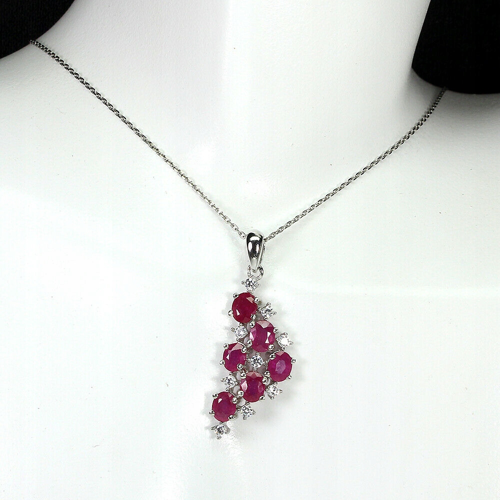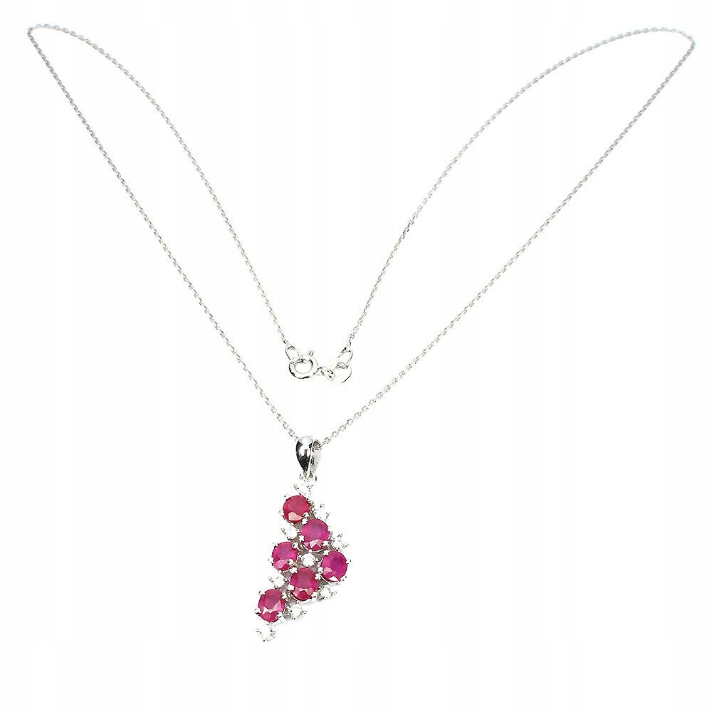 Oferujemy Państwu nowy, pozłacany 14K białym złotem, srebrny - próba 925 naszyjnik z naturalnymi rubinami i cyrkoniami.