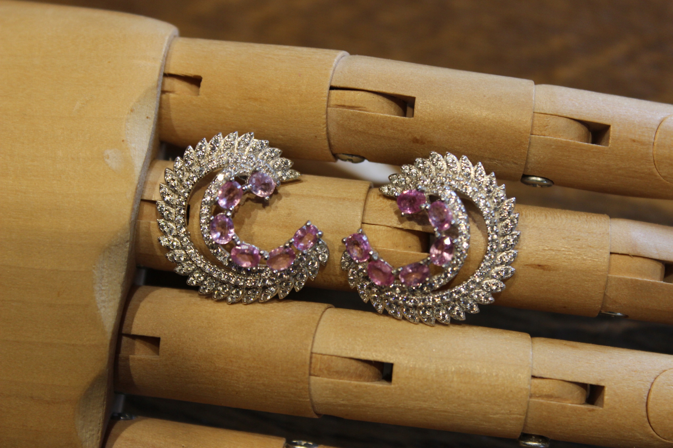 Kolczyki 925 szafiry Songea padparadża różowe 2