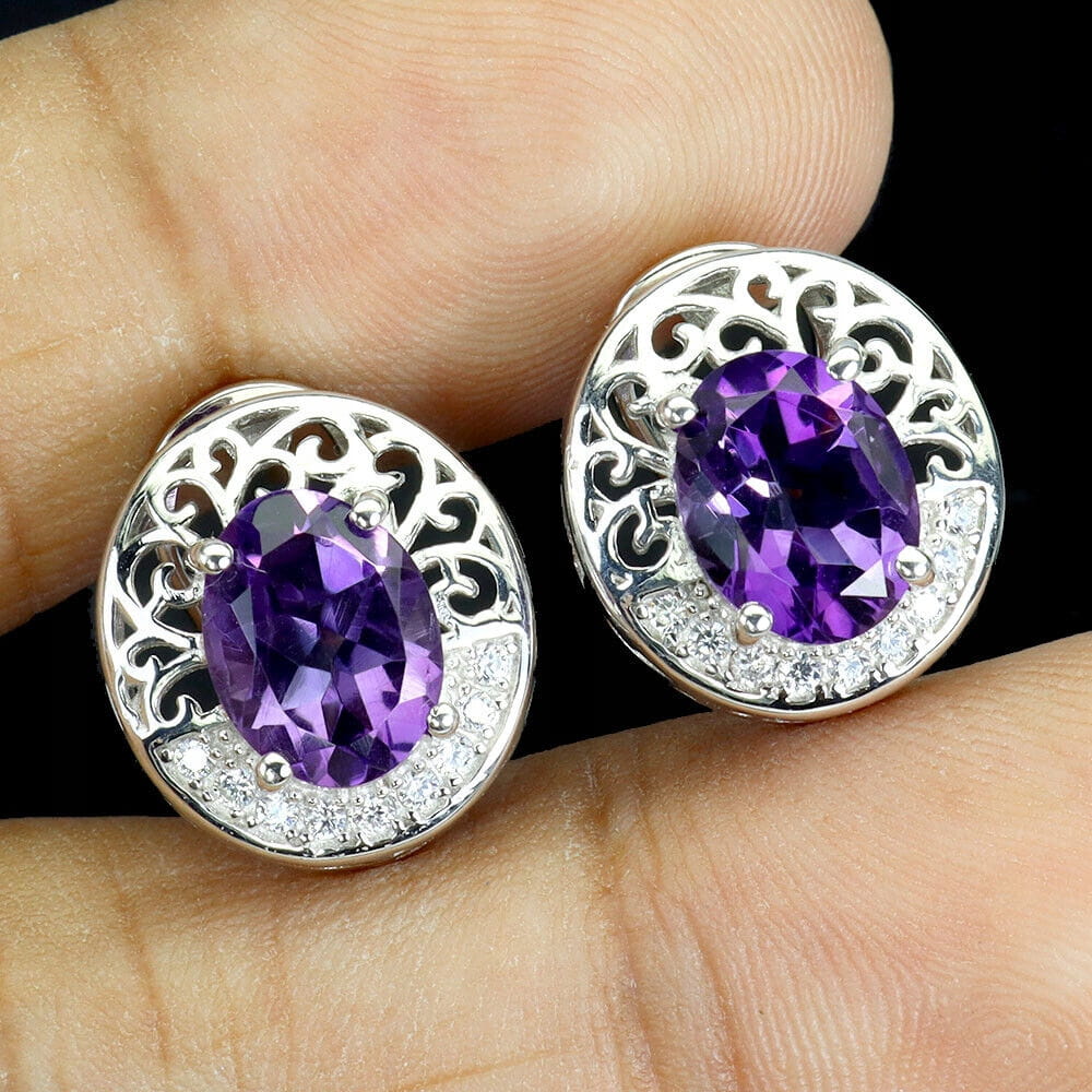Kolczyki delikatne piękne naturalne ametysty cyrkonie 4