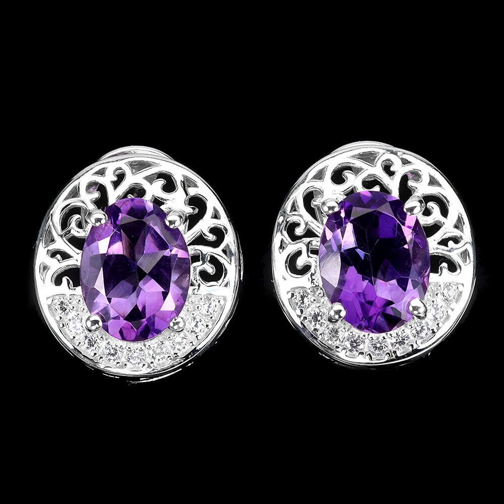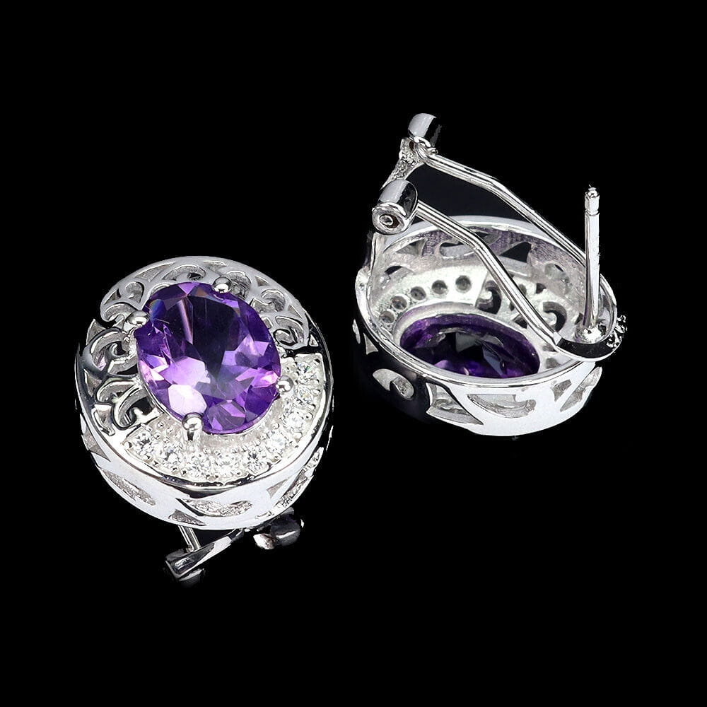 Oferujemy Państwu nowe, pozłacane białym 14K złotem, srebrne - próba 925 kolczyki z naturalnymi ametystami i cyrkoniami.