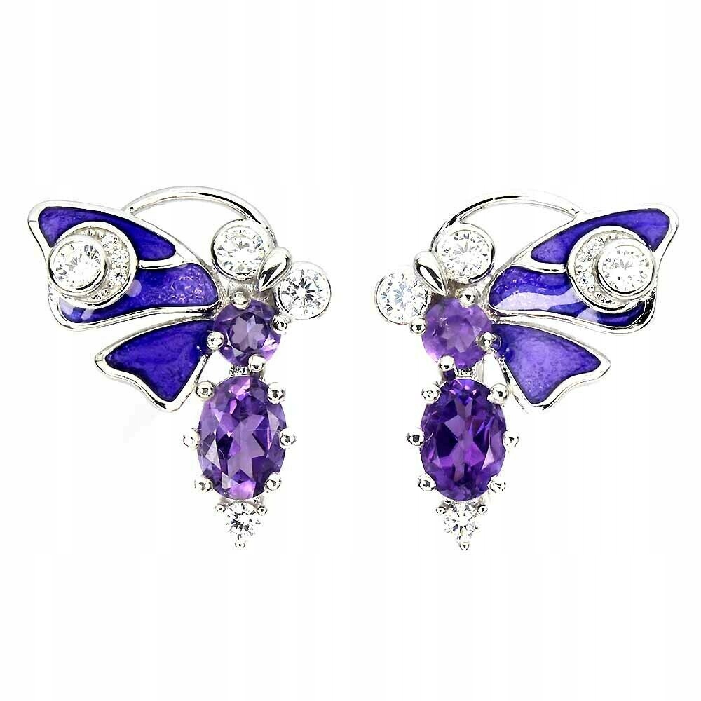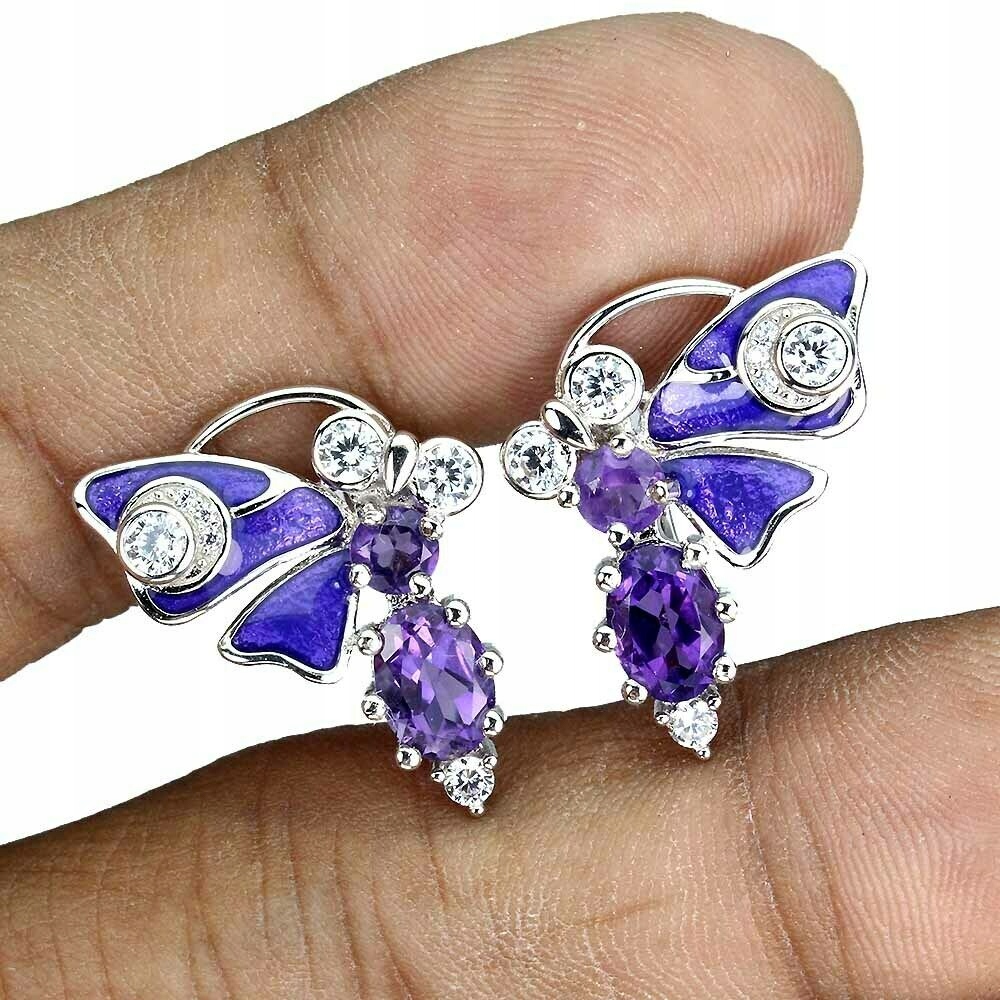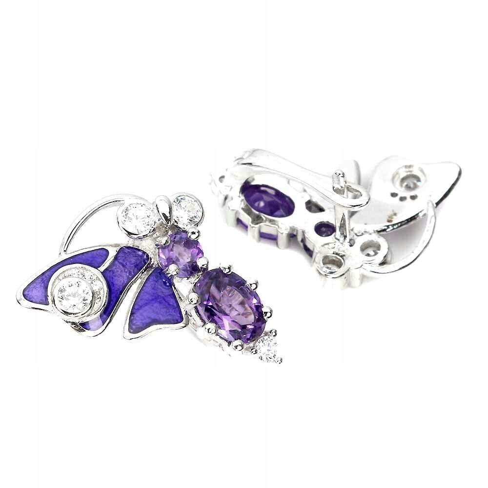 Kolczyki motyle naturalne ametysty cyrkonie 925 4