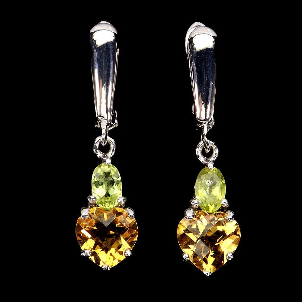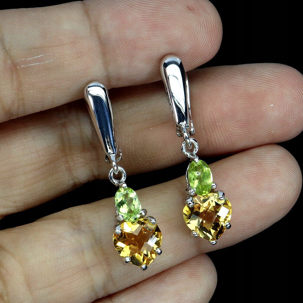 Kolczyki srebrne 925 naturalne oliwiny cytryny delikatne serce 1