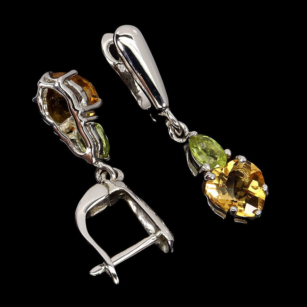 Oferujemy Państwu nowe, pozłacane białym 14K złotem, srebrne - próba 925 kolczyki z naturalnymi oliwinami i cytrynami.