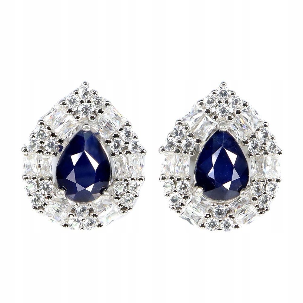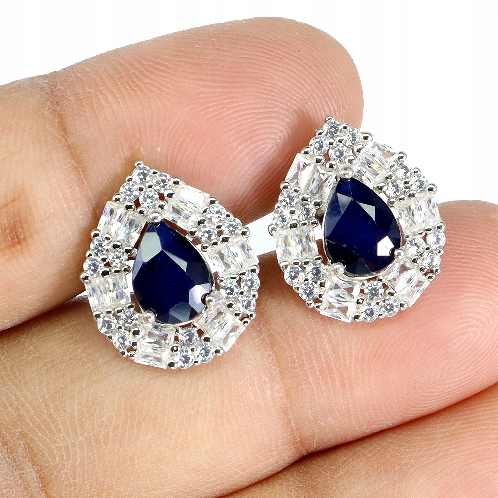Kolczyki srebrne eleganckie naturalne niebieskie szafiry cyrkonie 1