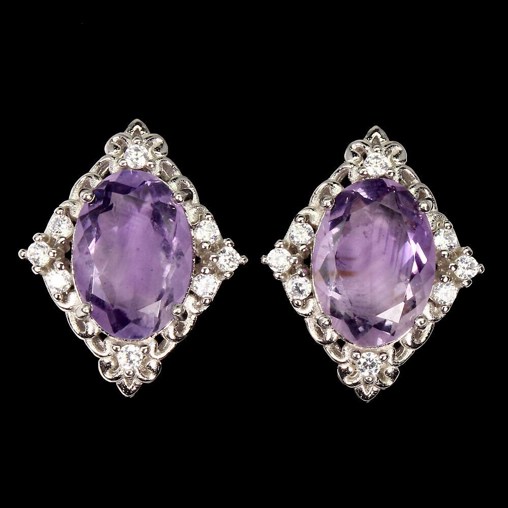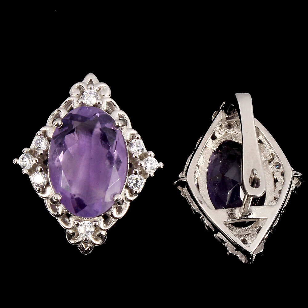 Kolczyki srebro 925 cyrkonie ametysty naturalne 8