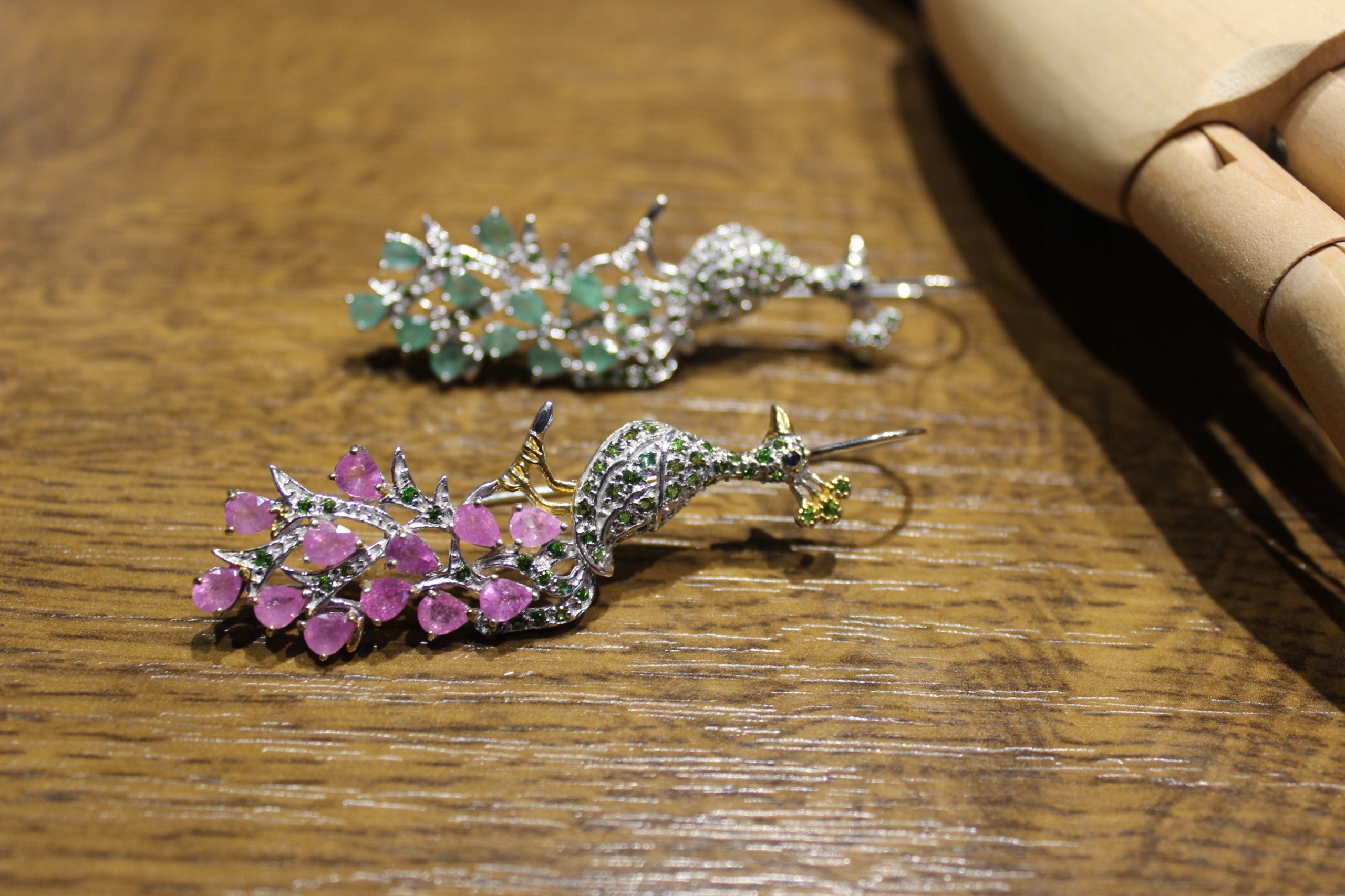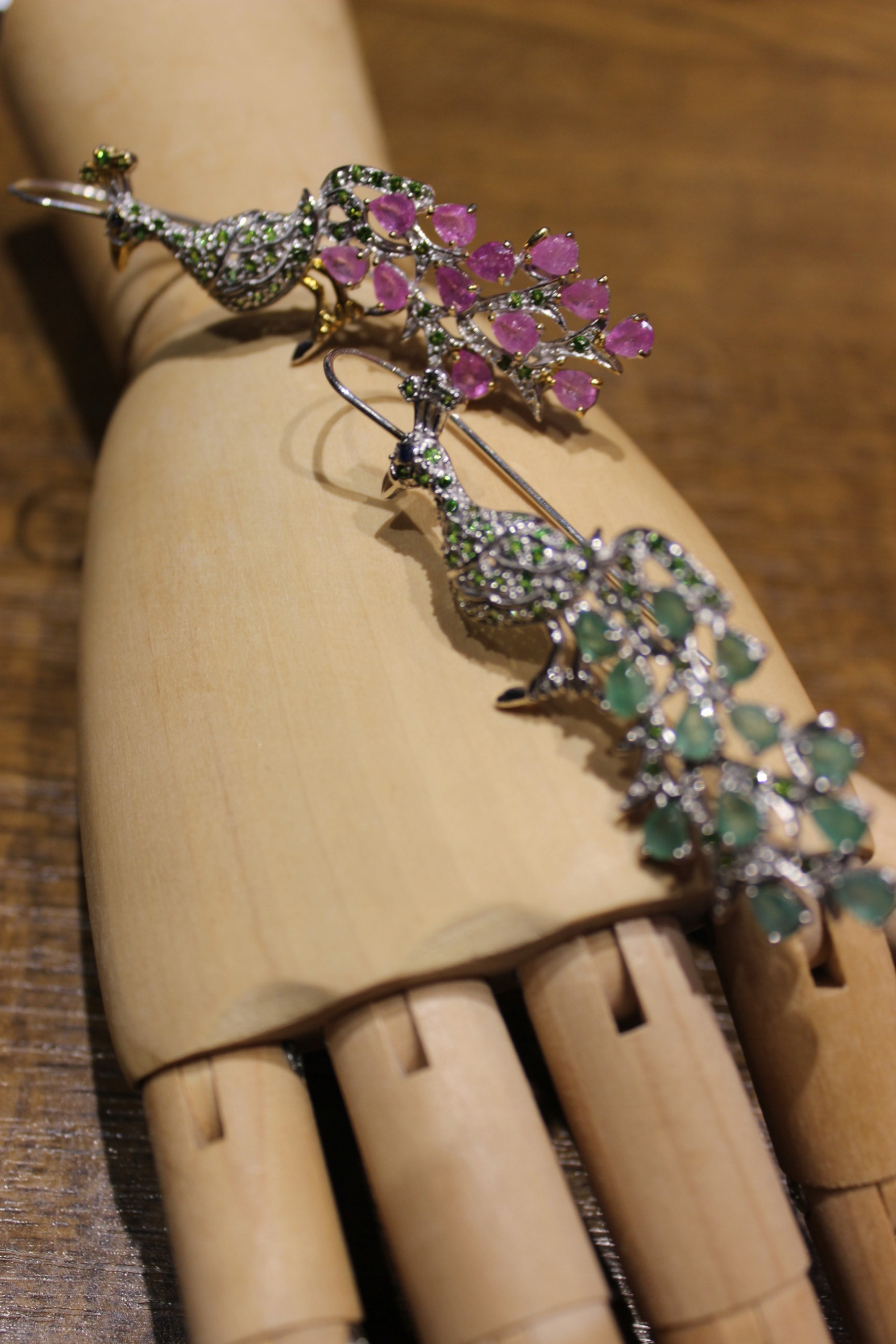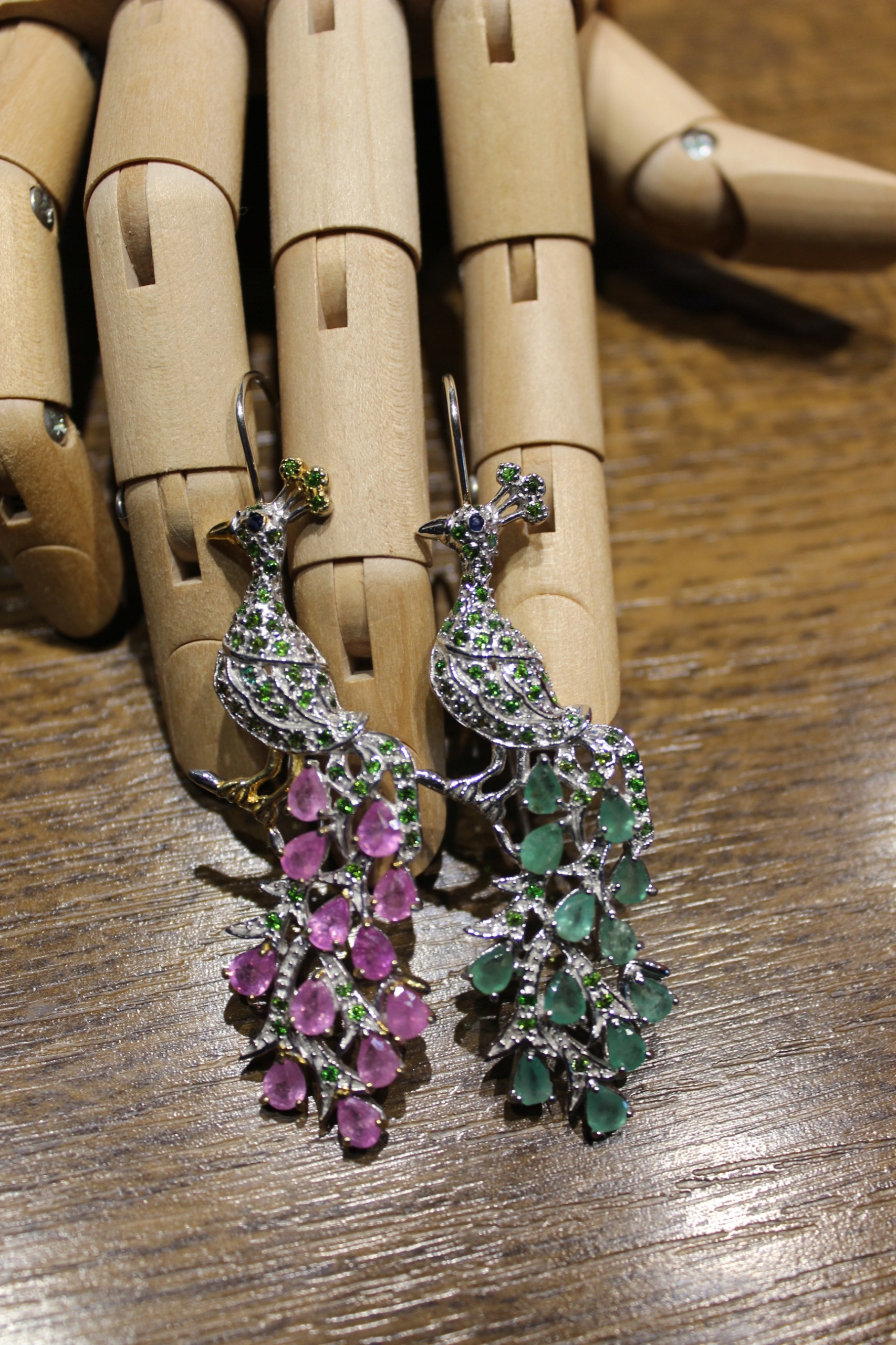 Kolczyki szafiry szmaragdy diopsydy pawie