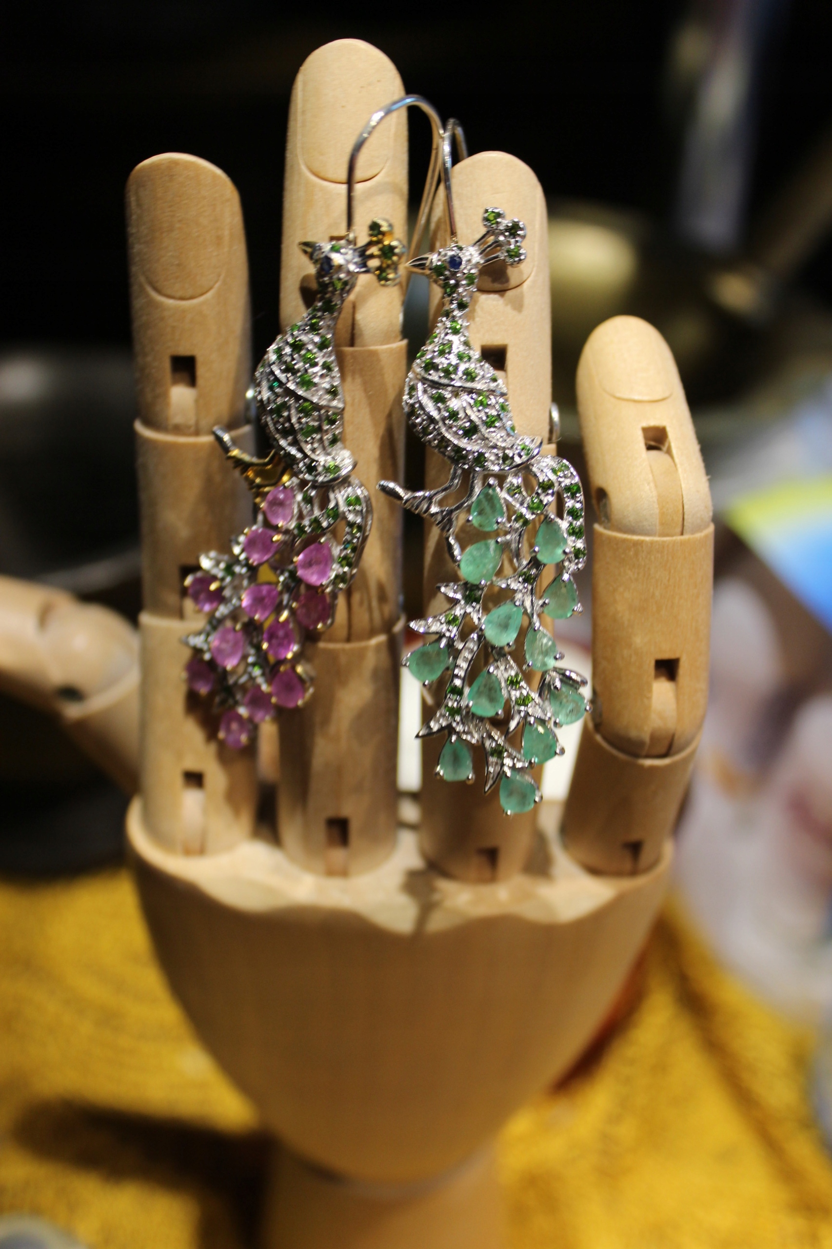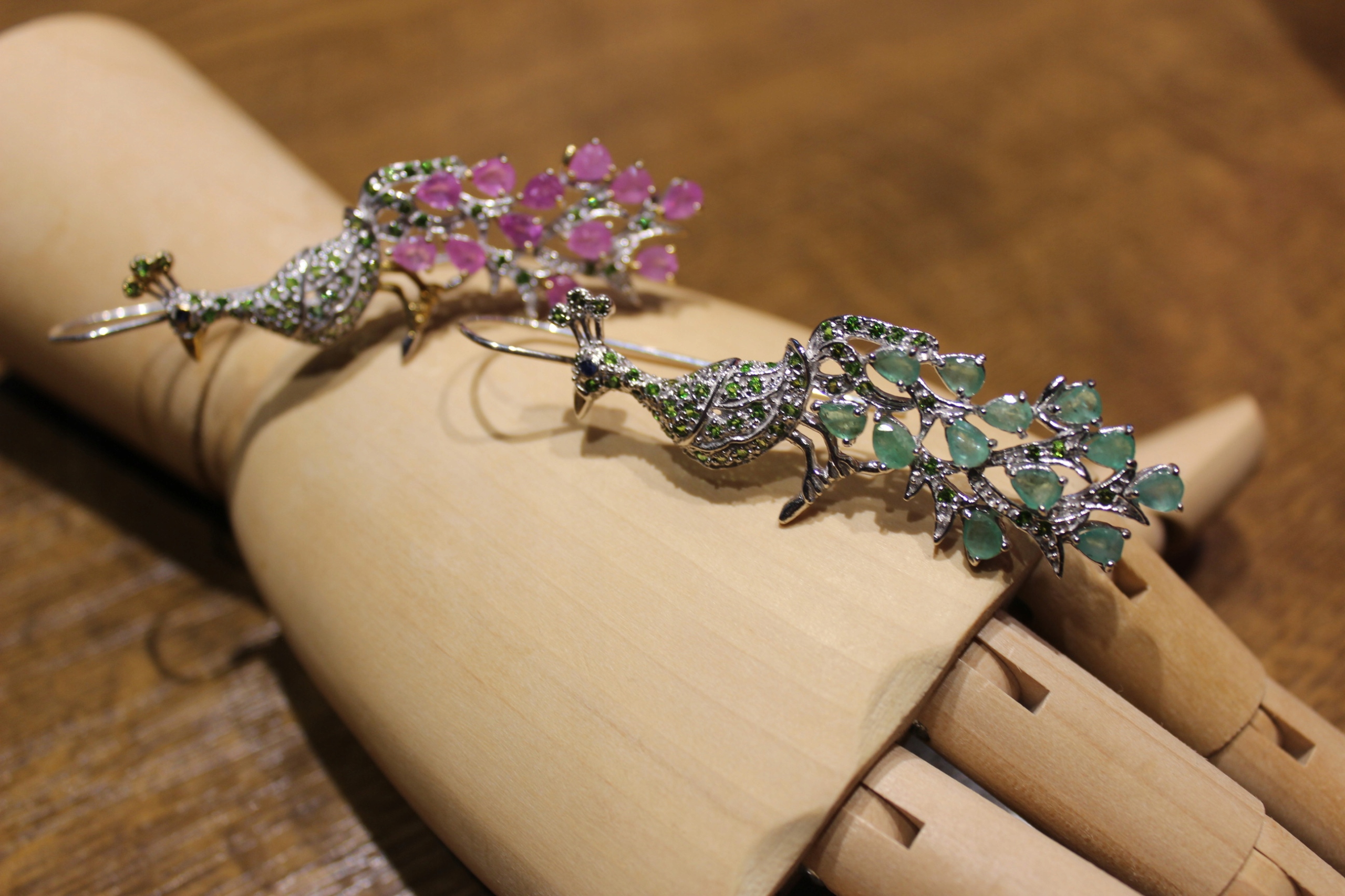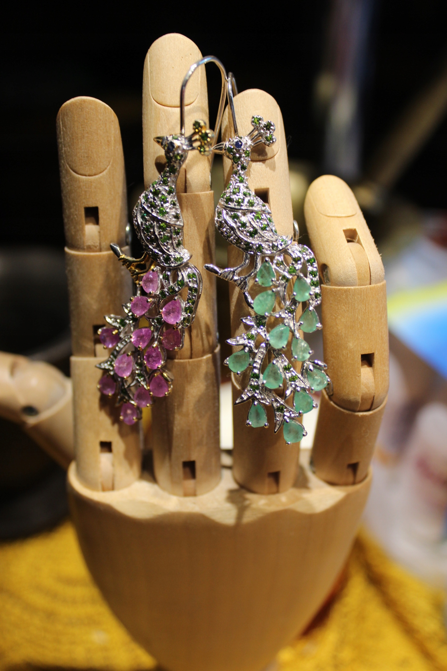 Kolczyki szafiry szmaragdy diopsydy pawie
