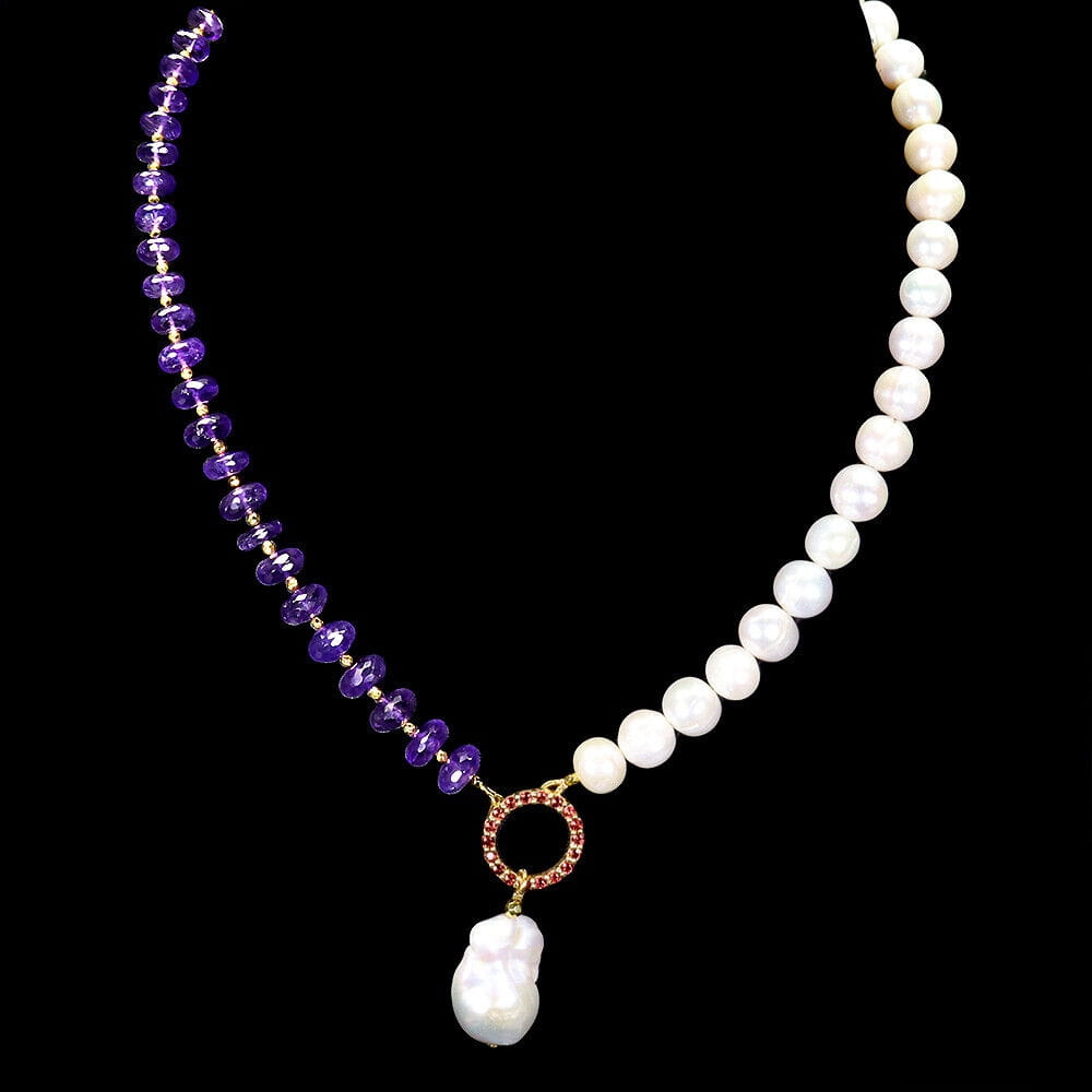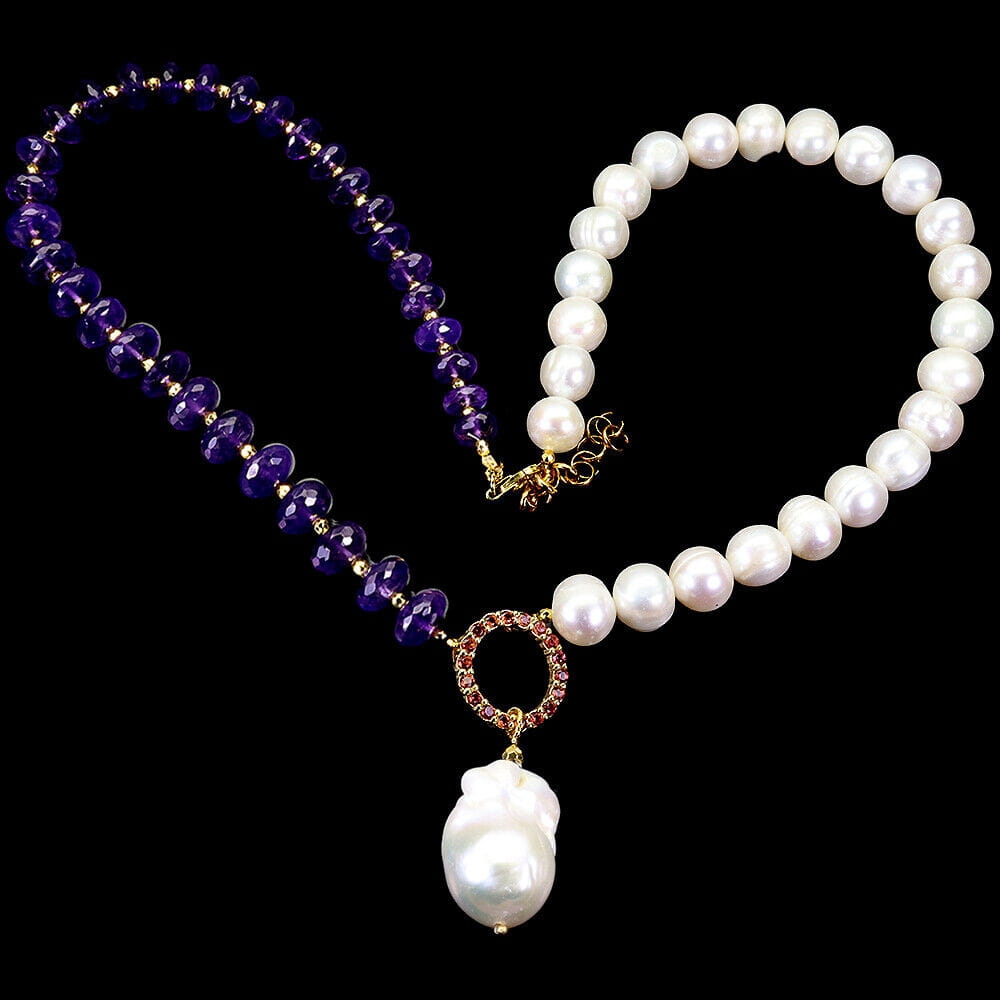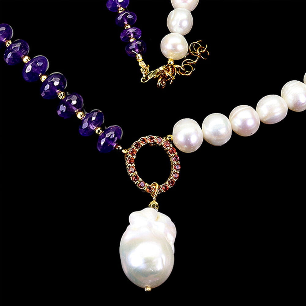Naszyjnik 925 naturalne perły granaty ametysty zjawiskowy