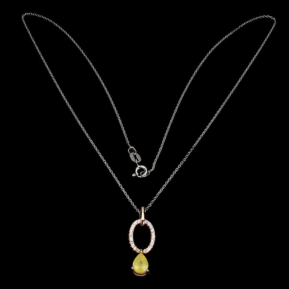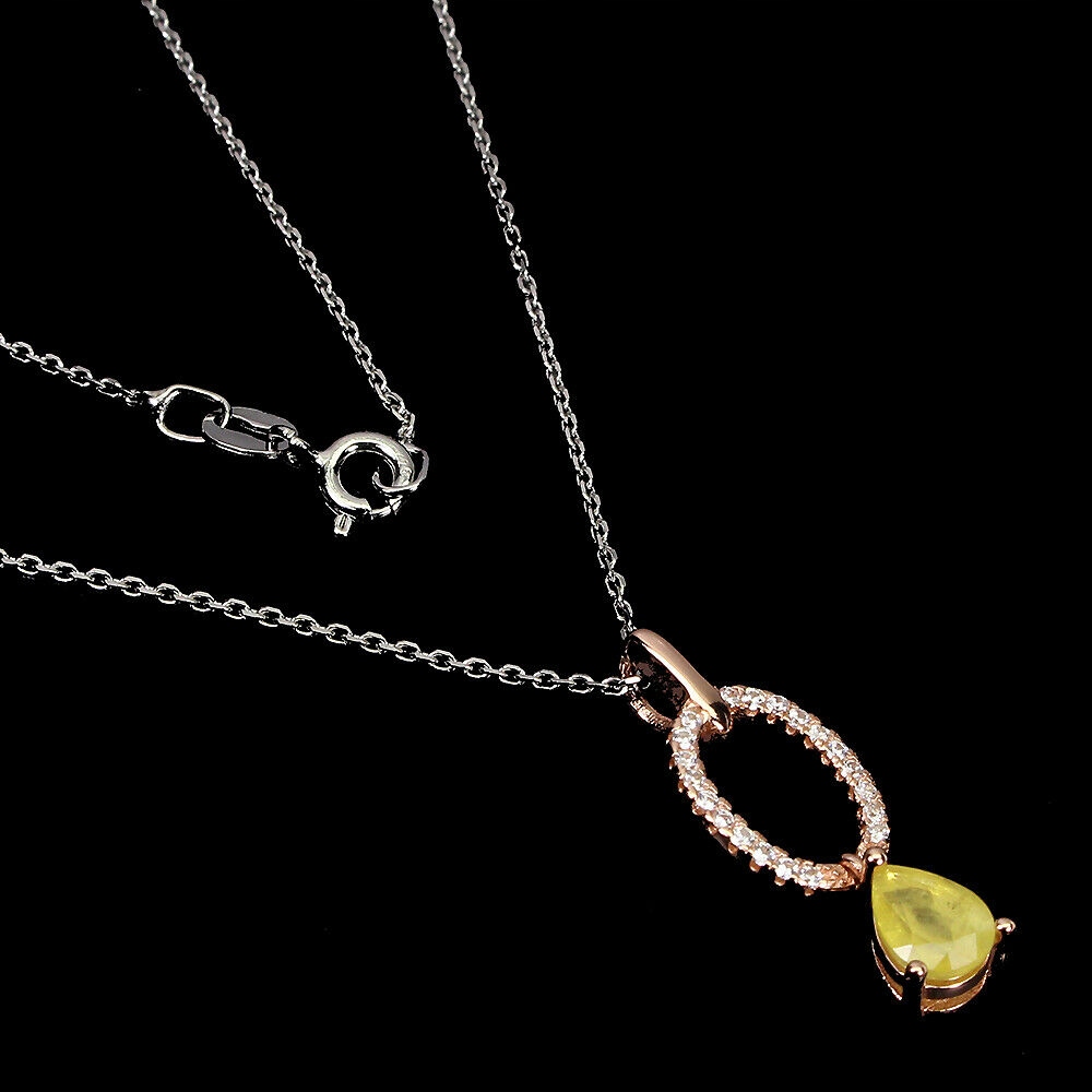 Oferujemy Państwu nowy, pozłacany 14K różowym złotem, srebrny - próba 925 naszyjnik z naturalnym żółtym szafirem i cyrkoniami.