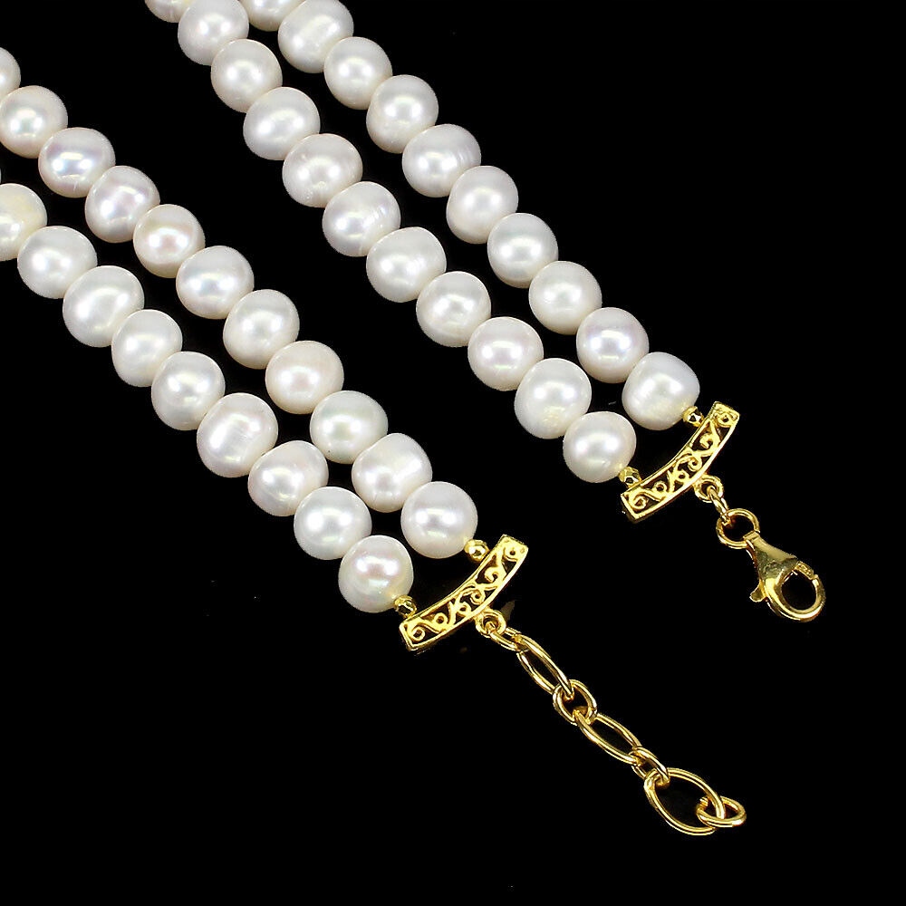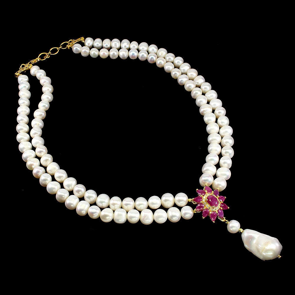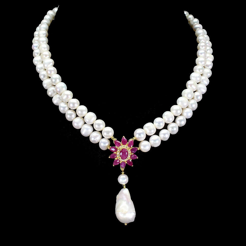 Oferujemy Państwu nowy, pozłacany 14K żółtym złotem, srebrny - próba 925 naszyjnik z naturalnymi perłami, białymi topazami i rubinami.