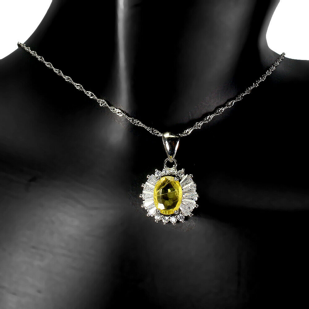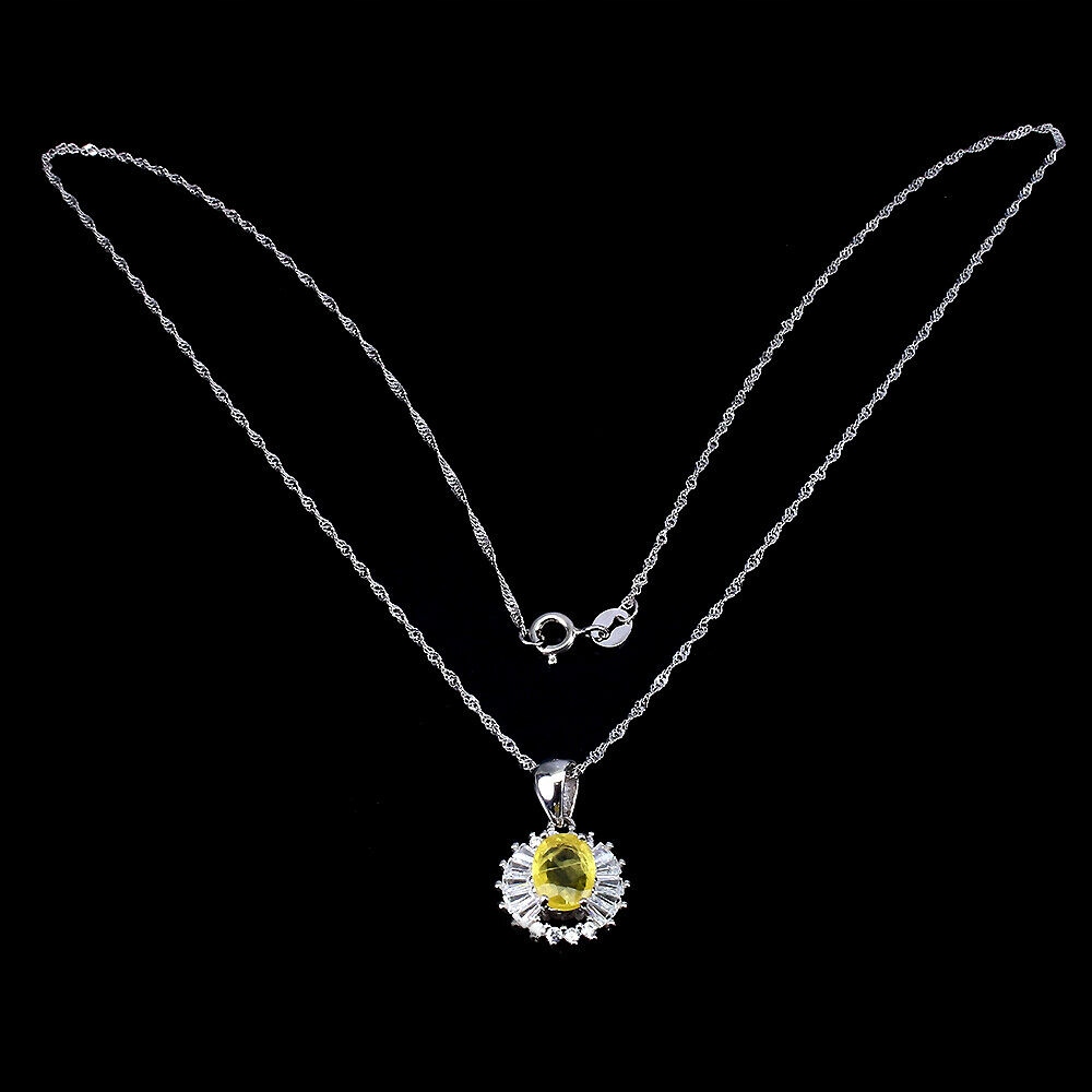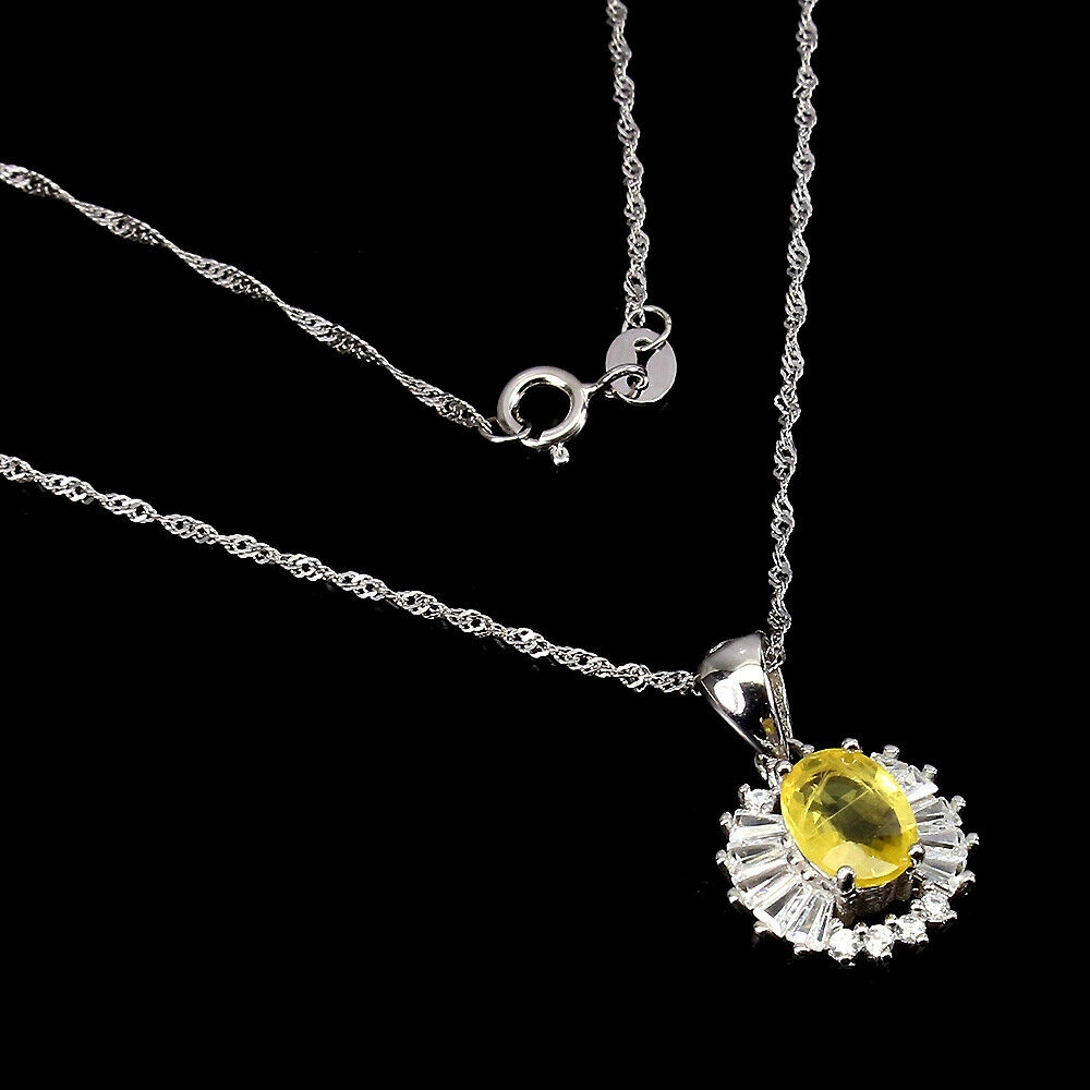 Oferujemy Państwu nowy, pozłacany 14K białym złotem, srebrny - próba 925 naszyjnik z naturalnym żółtym szafirem i cyrkoniami.