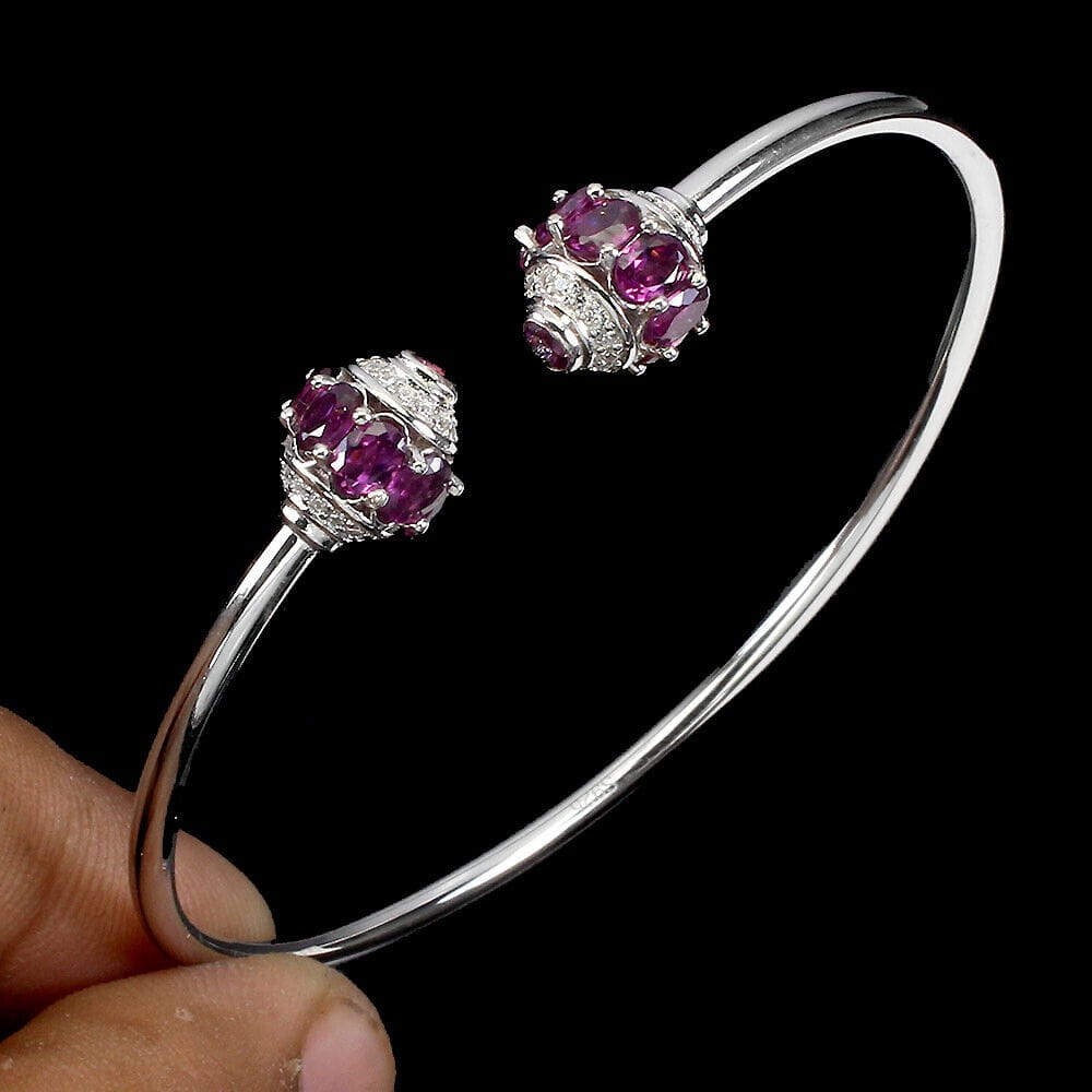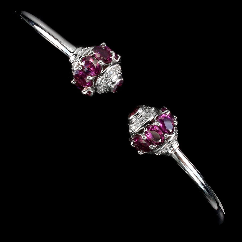 Oferujemy Państwu nową, pozłacaną białym 14K złotem, srebrną - próba 925 bransoletkę z naturalnymi granatami (rodolitami) i cyrkoniami.