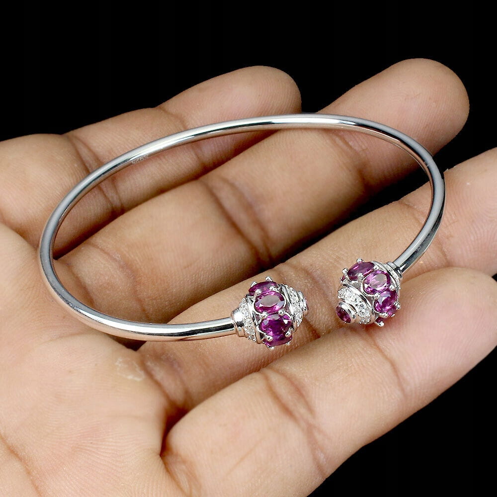 Piękna 925 bransoletka srebrna delikatna naturalne granaty cyrkonie