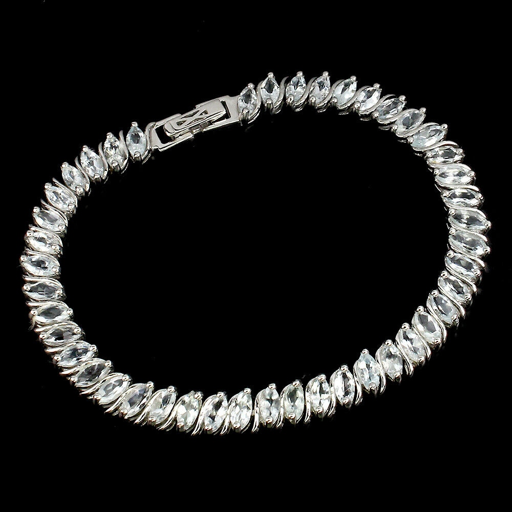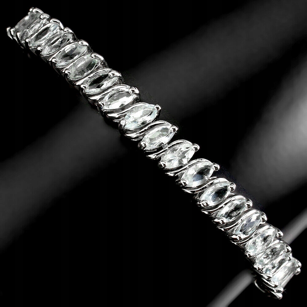 Oferujemy Państwu nową, pozłacaną białym 14K złotem, srebrną - próba 925 bransoletkę z naturalnym akwamarynami.