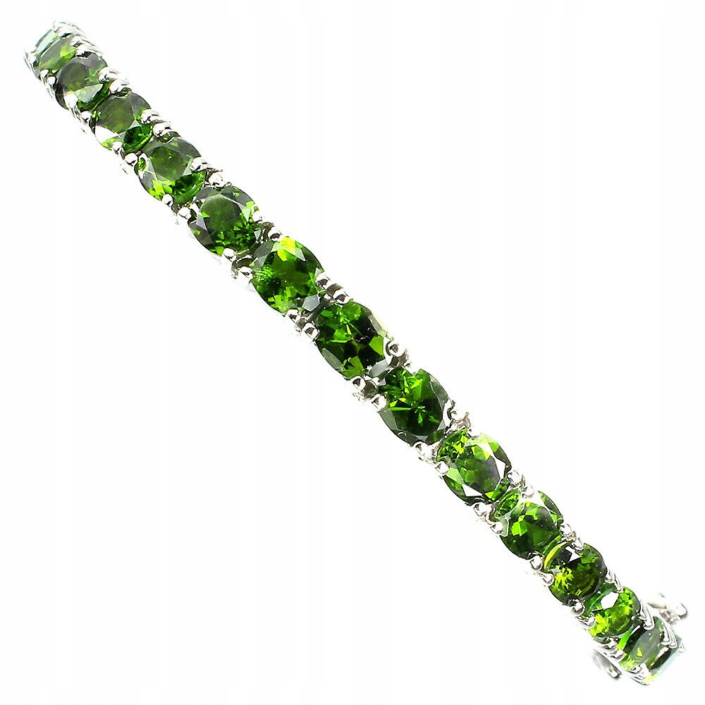 oferujemy Państwu nową, pozłacaną białym 14K złotem srebrną - próba 925 bransoletkę z naturalnymi diopsydami.