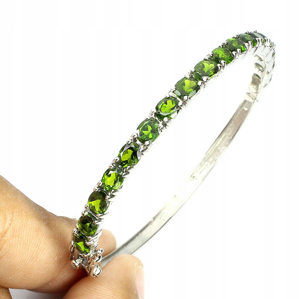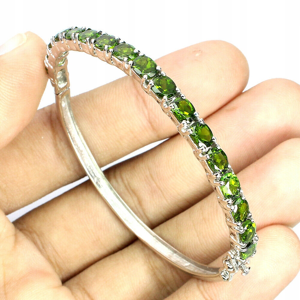 Piękna bransoletka srebrna naturalne diopsydy 925