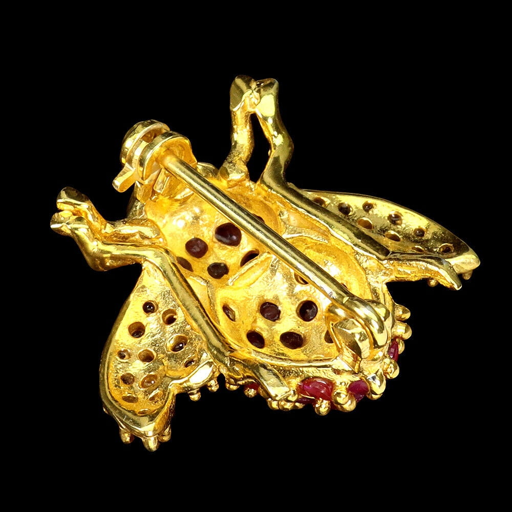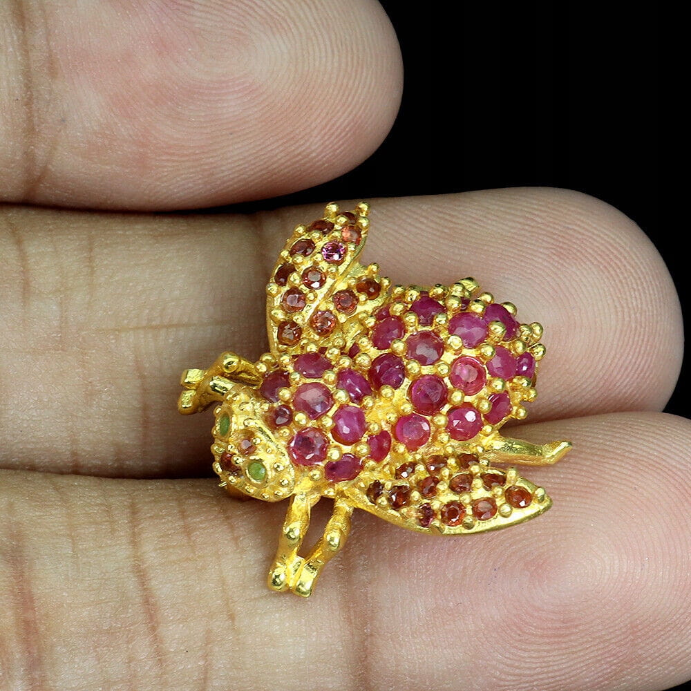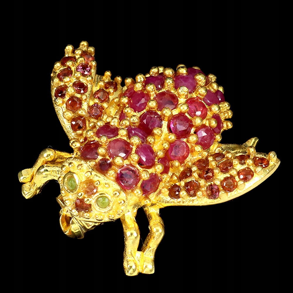 Piękna delikatna srebrna broszka owad naturalne rubiny granaty diopsydy 925