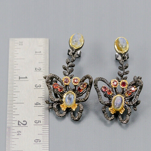 Piękne kolczyki natural labradoryty granaty motyl1