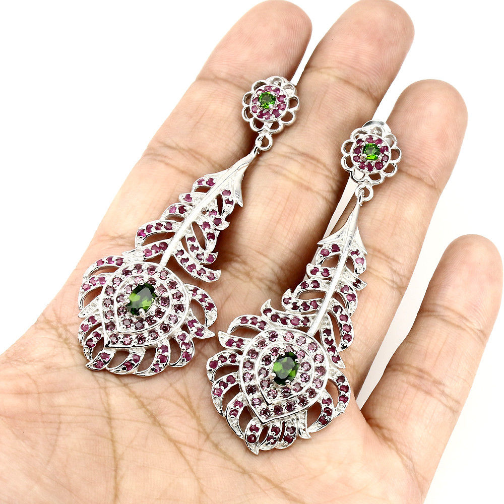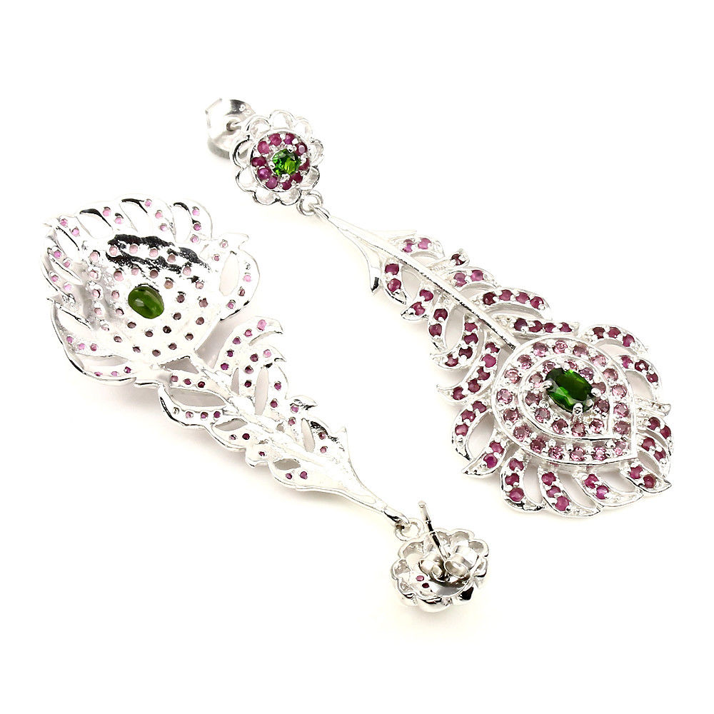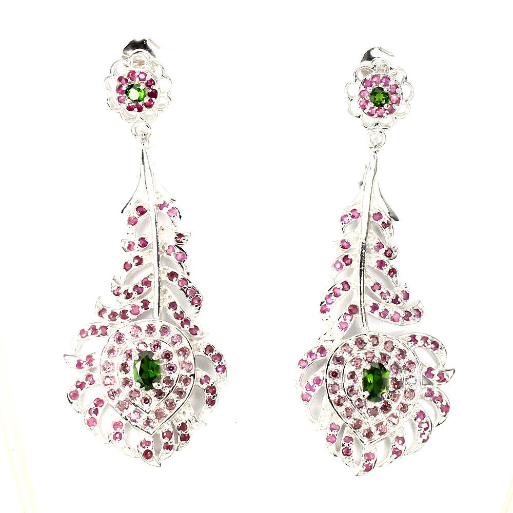 oferujemy Państwu nowe, pozłacane białym 14K złotem srebrne - próba 925 kolczyki z naturalnymi diopsydami i rubinami.