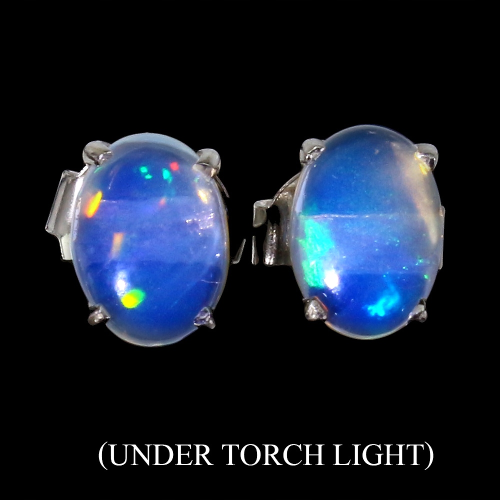 Oferujemy Państwu pozłacane 14K białym złotem, srebrne - próba 925 - kolczyki z naturalnymi opalami ognistymi.