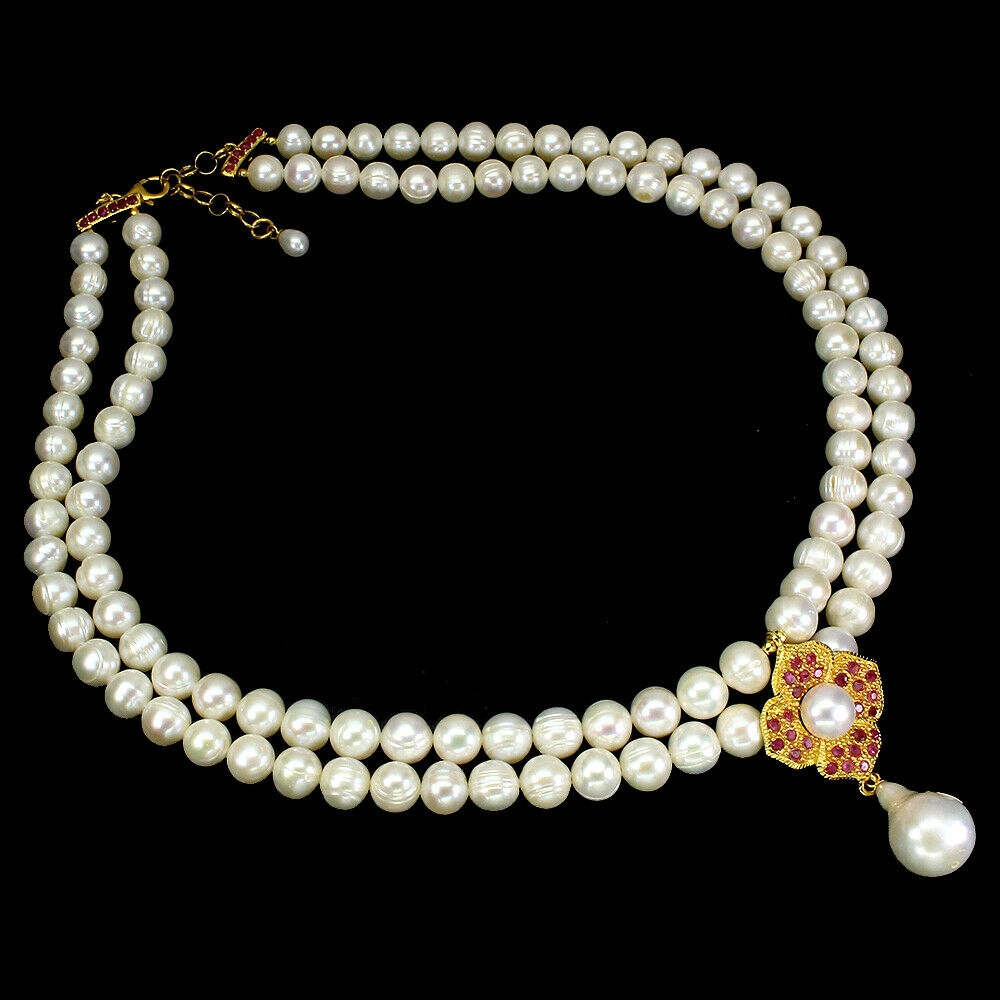 Piękny naszyjnik naturalne rubiny perły 925 srebro