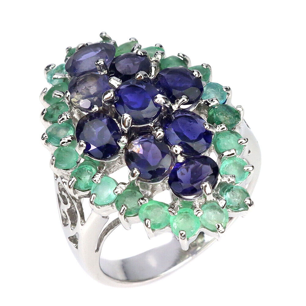 Piękny pierścionek 925 r 14 naturalne szmaragdy iolity