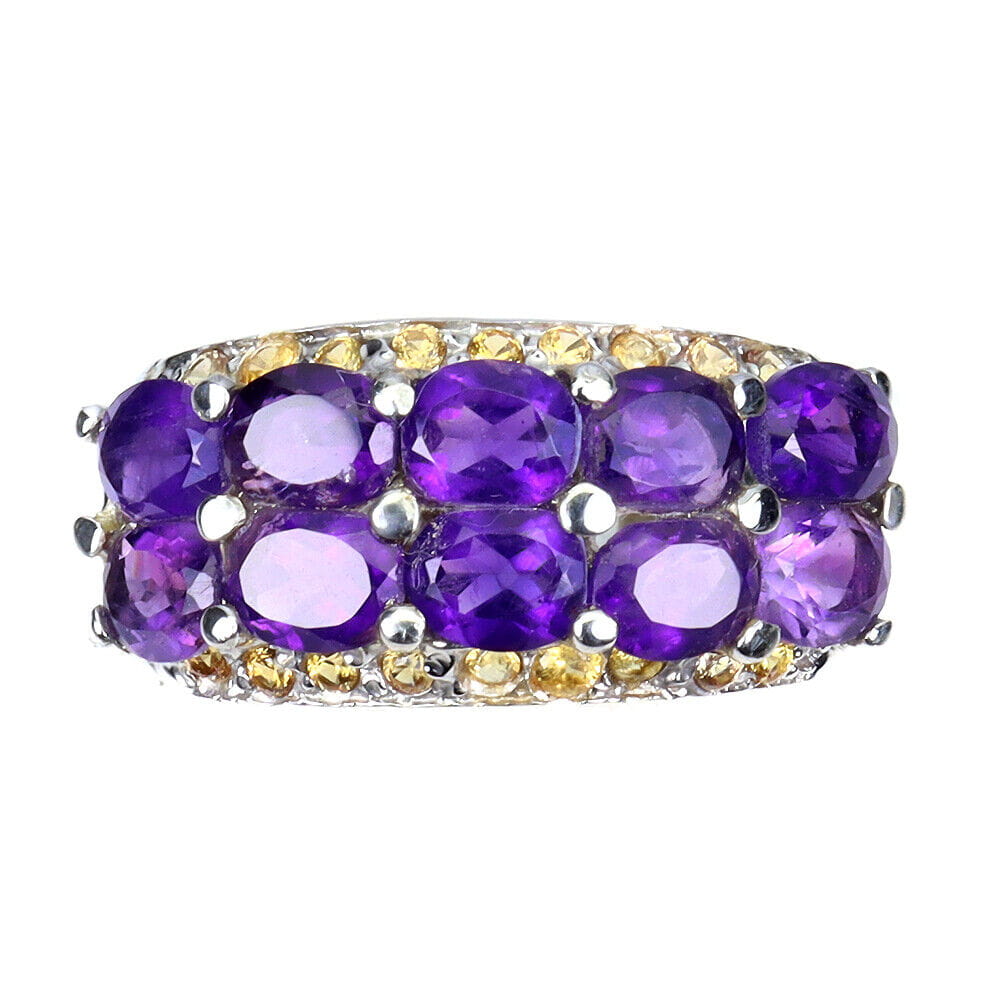 Oferujemy Państwu nowy, pozłacany białym złotem 14K, srebrny - próba 925 pierścionek z naturalnymi ametystami i szafirami Songea.