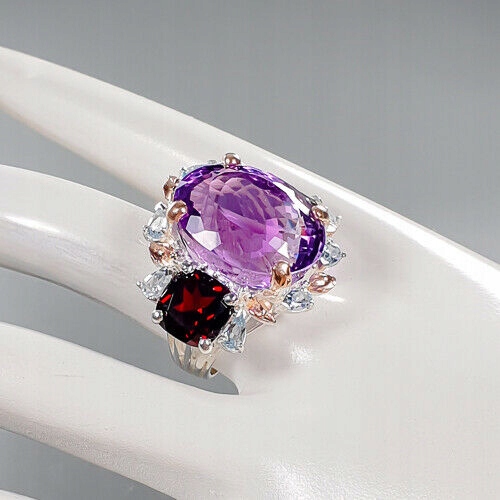 Pierścionek 25ct ametyst granaty topazy srebro r20