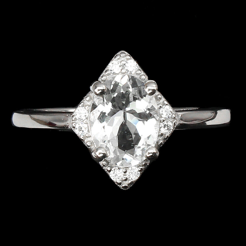 oferujemy Państwu nowy, srebrny - próba 925- pozłacany 14K białym złotem pierścionek z naturalnym akwamarynem i cyrkoniami.