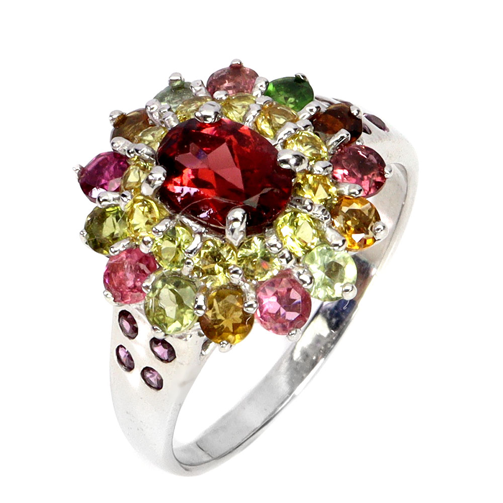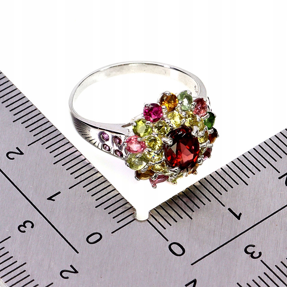 Pierścionek 925 elegancki naturalny granat turmaliny szafiry Songea r 17