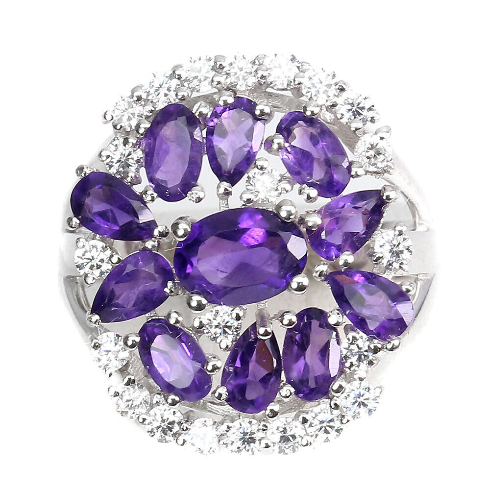 Oferujemy Państwu nowy, pozłacany białym złotem 14K, srebrny - próba 925 pierścionek z naturalnymi ametystami i cyrkoniami.