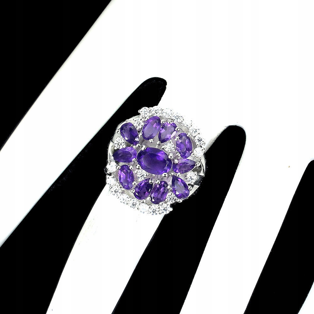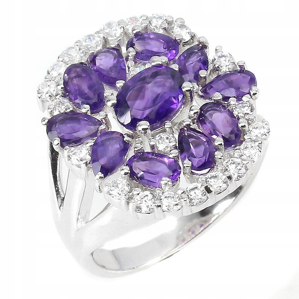 Pierścionek 925 naturalne ametysty cyrkonie r 15
