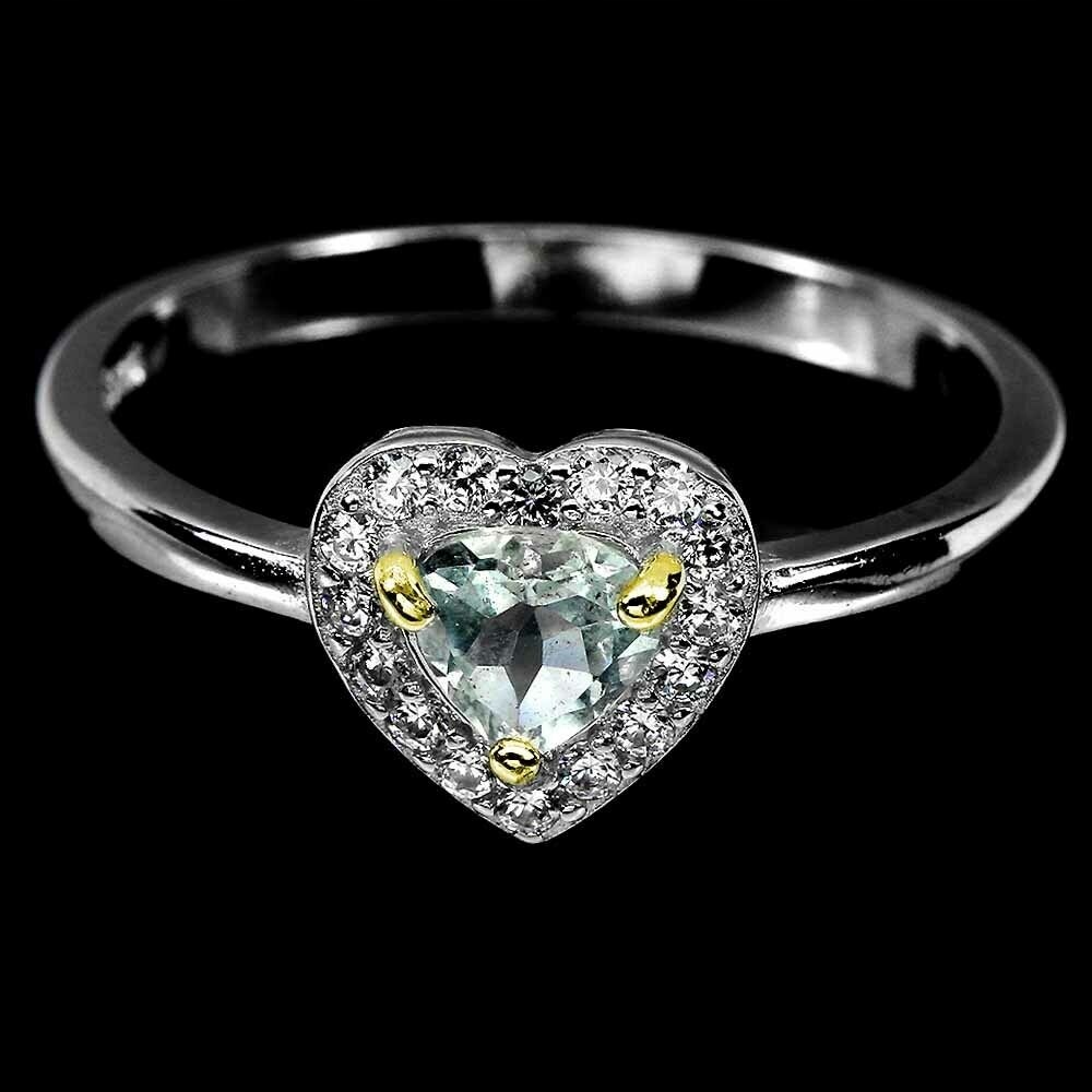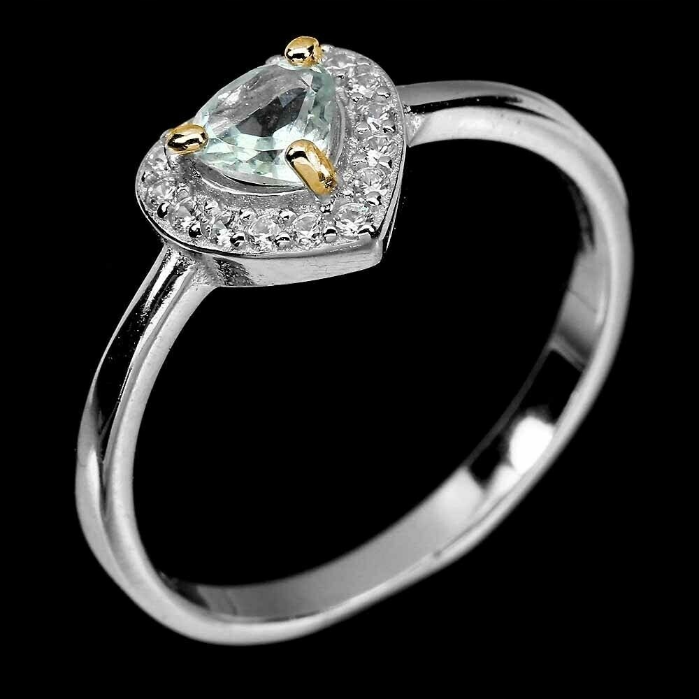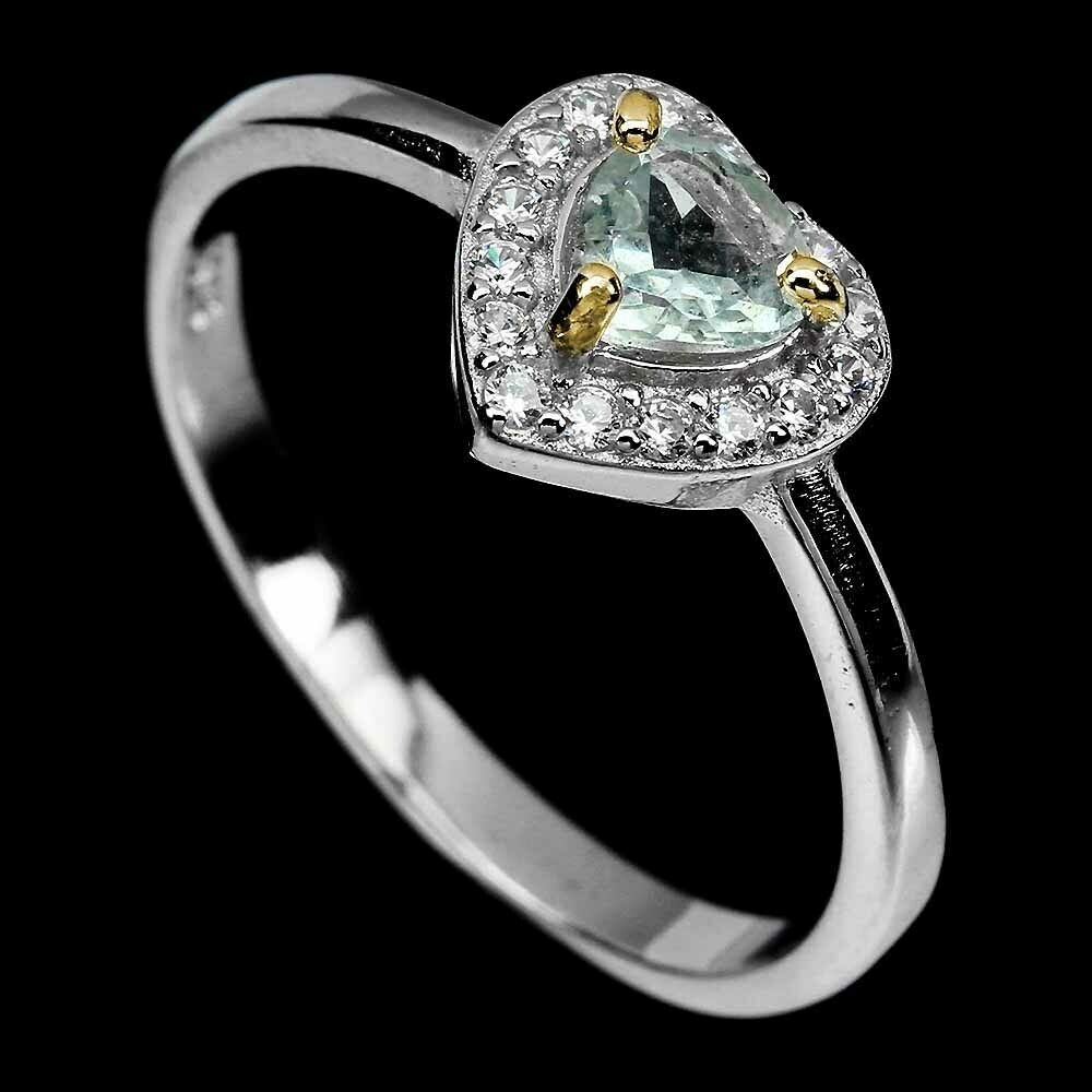 Pierścionek 925 serce akwamaryn cyrkonie r 14