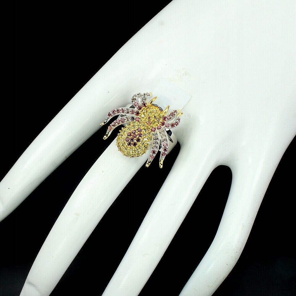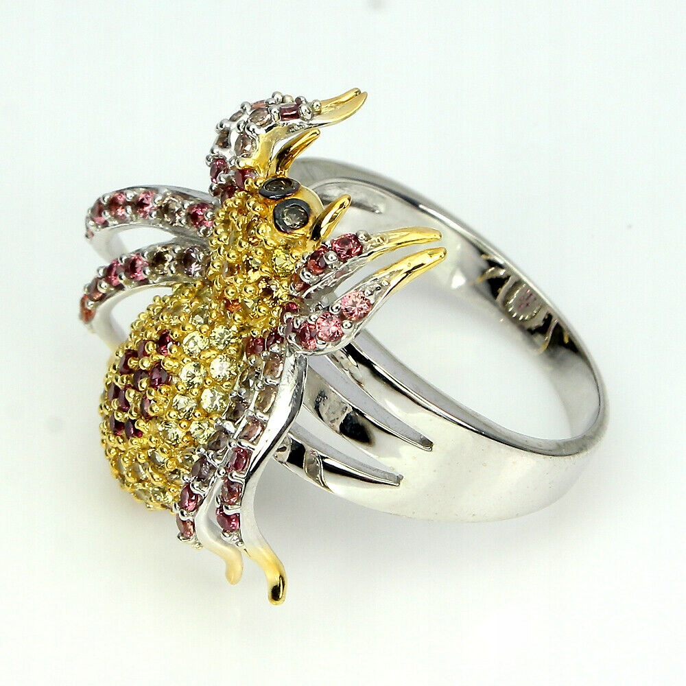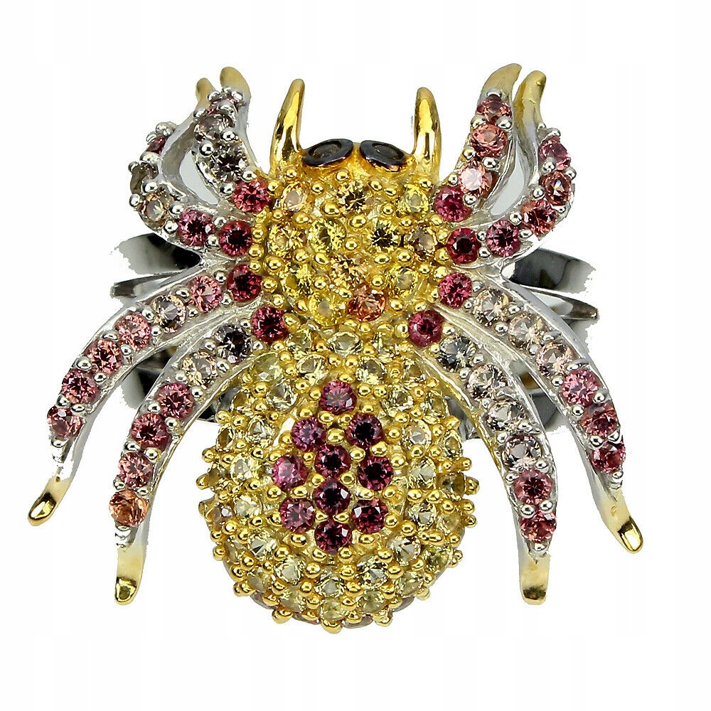 oferujemy Państwu nowy, pozłacany 14K białym i żółtym złotem srebrny - próba 925 pierścionek z naturalnymi szafirami Songea padparadża.