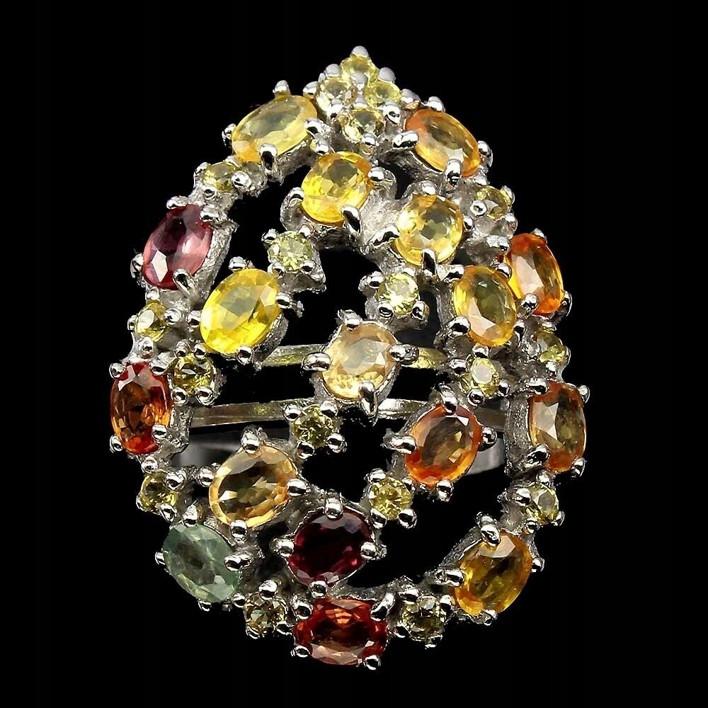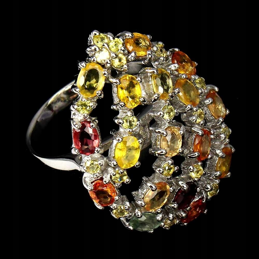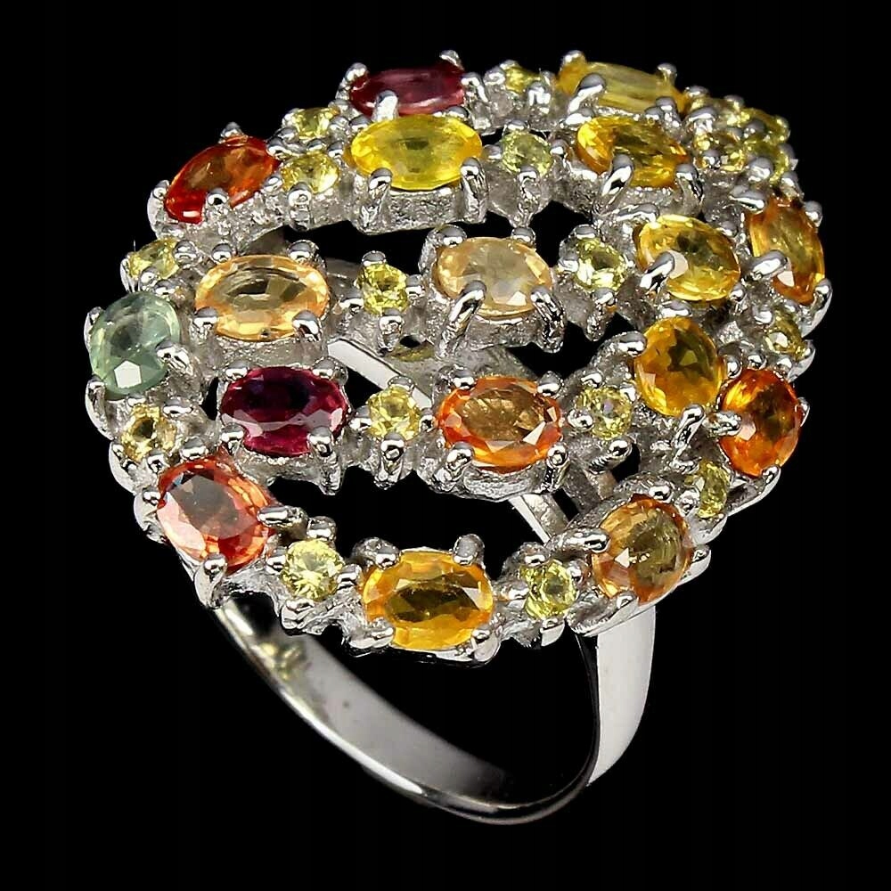 oferujemy Państwu nowy, pozłacany 14K białym złotem, srebrny - próba 925 pierścionek z naturalnymi szafirami Songea.