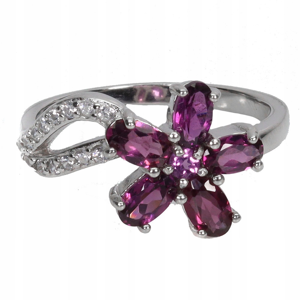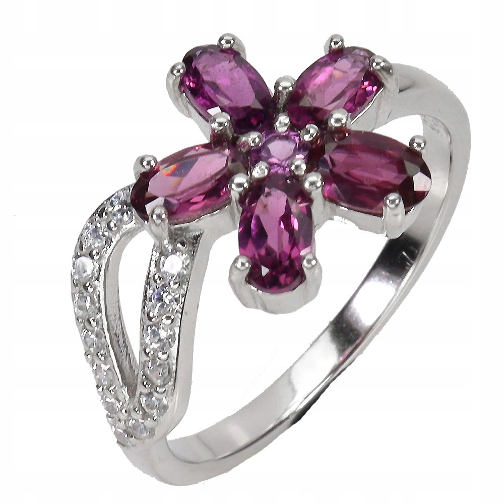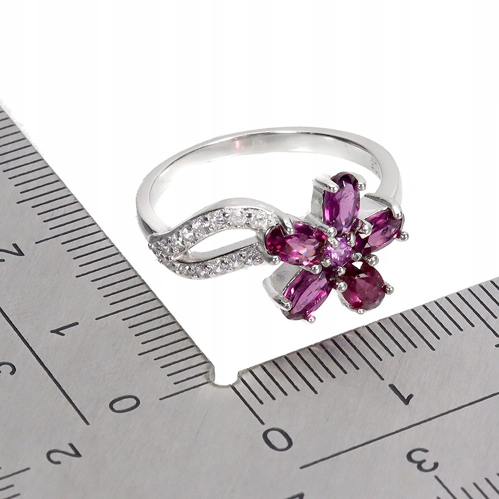 Pierścionek delikatny srebrny naturalne rodolity granaty kwiat r 16