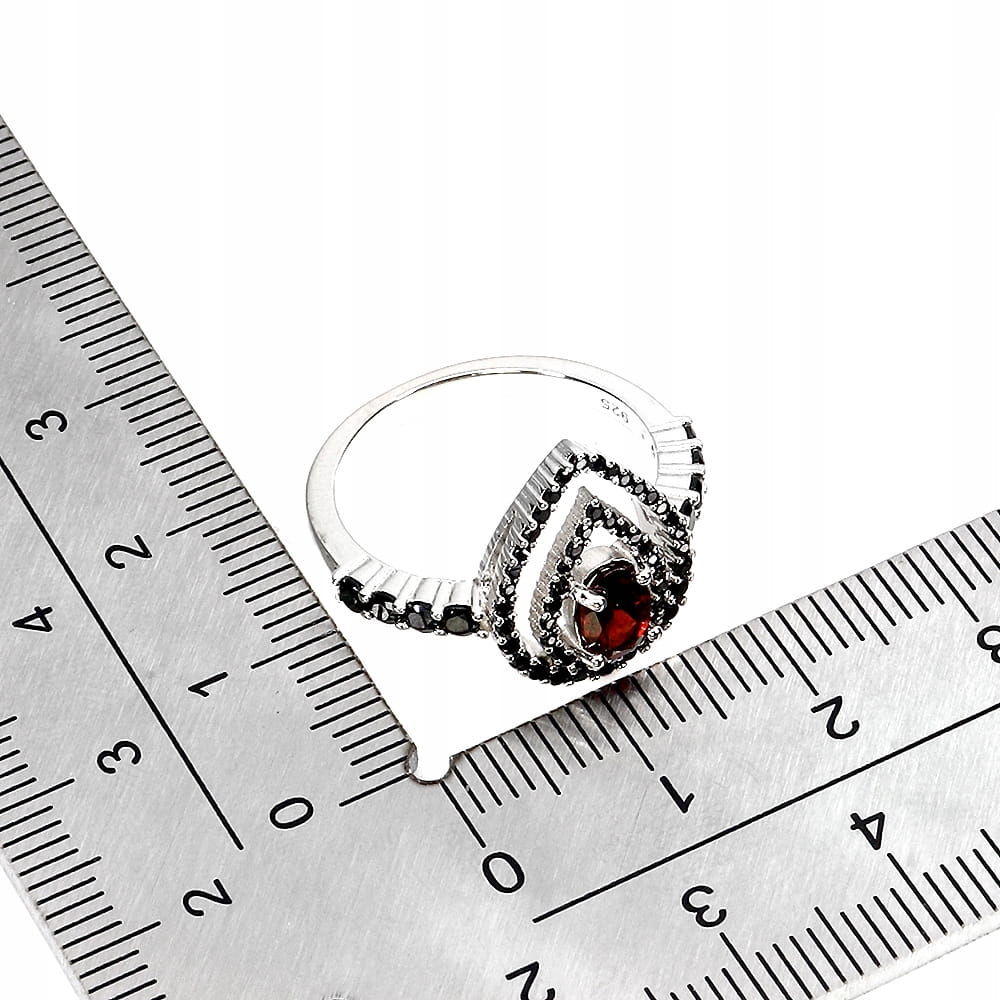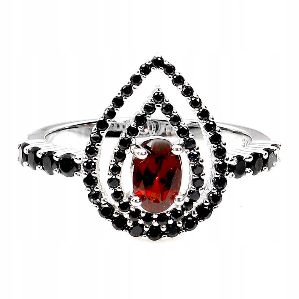 Pierścionek elegancki srebro 925 naturalny granat czarne spinele r 14