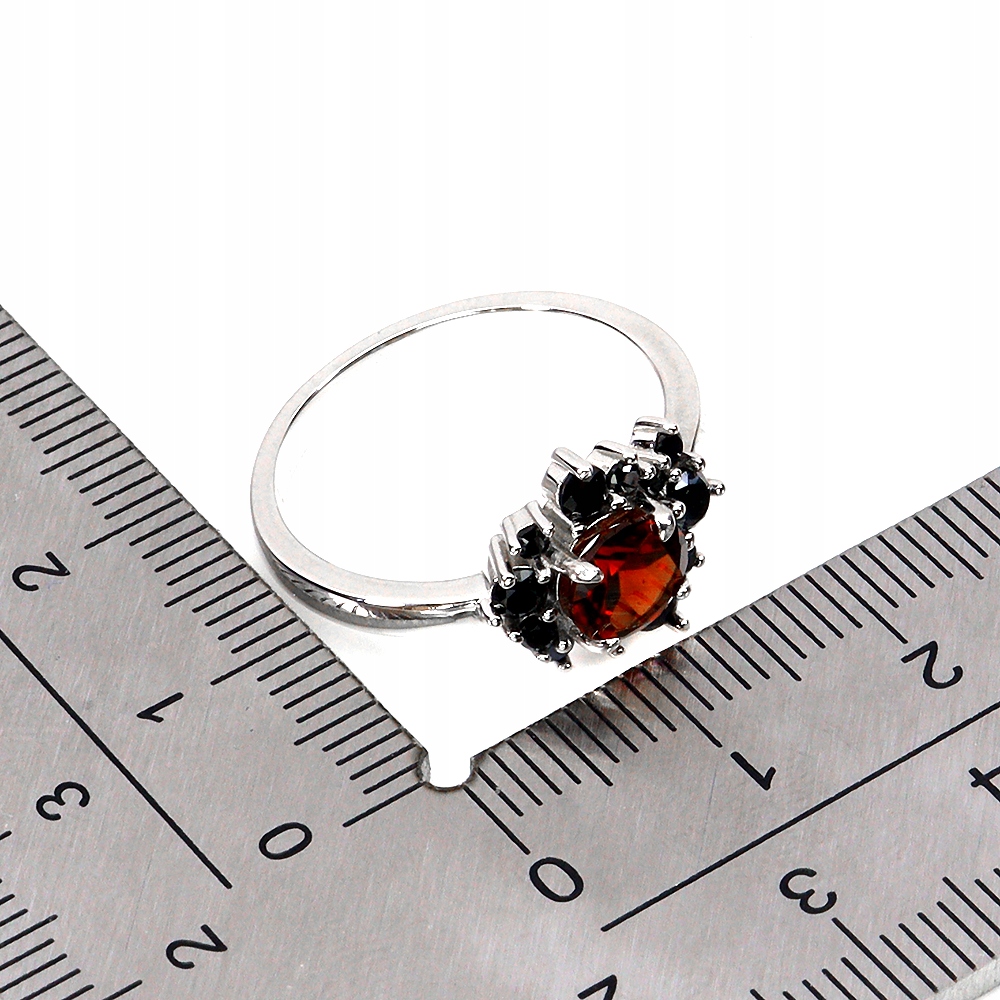 Pierścionek elegancki srebro 925 naturalny granat czarne spinele r 17