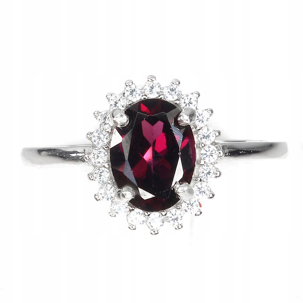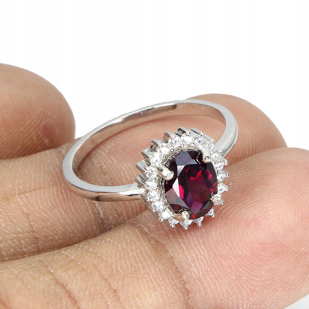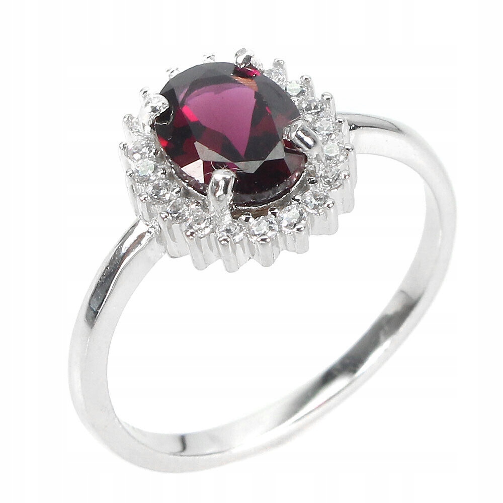 Oferujemy Państwu nowy, pozłacany białym złotem 14K, srebrny - próba 925 pierścionek z naturalnym granatem (rodolitem) i cyrkoniami.