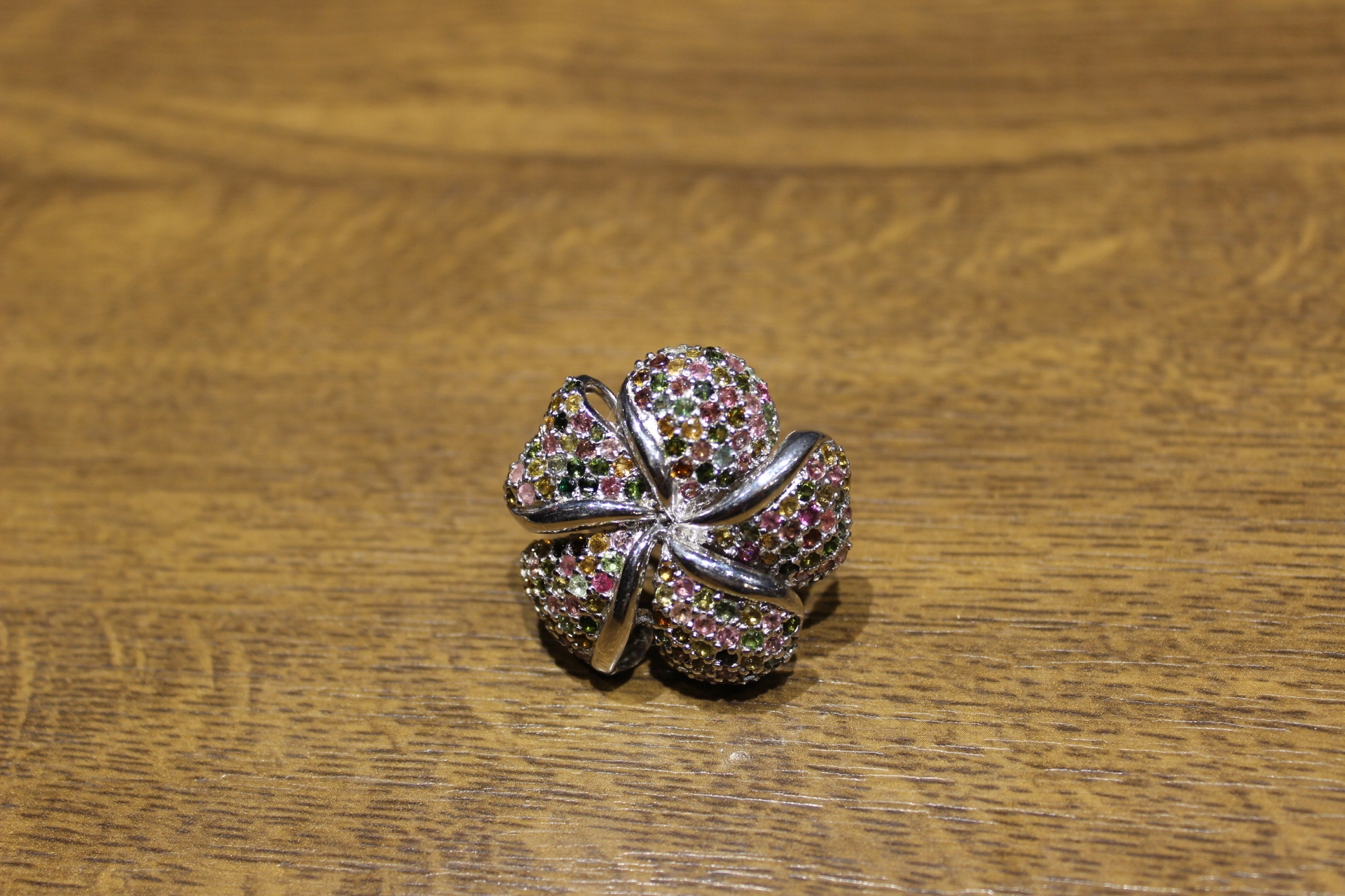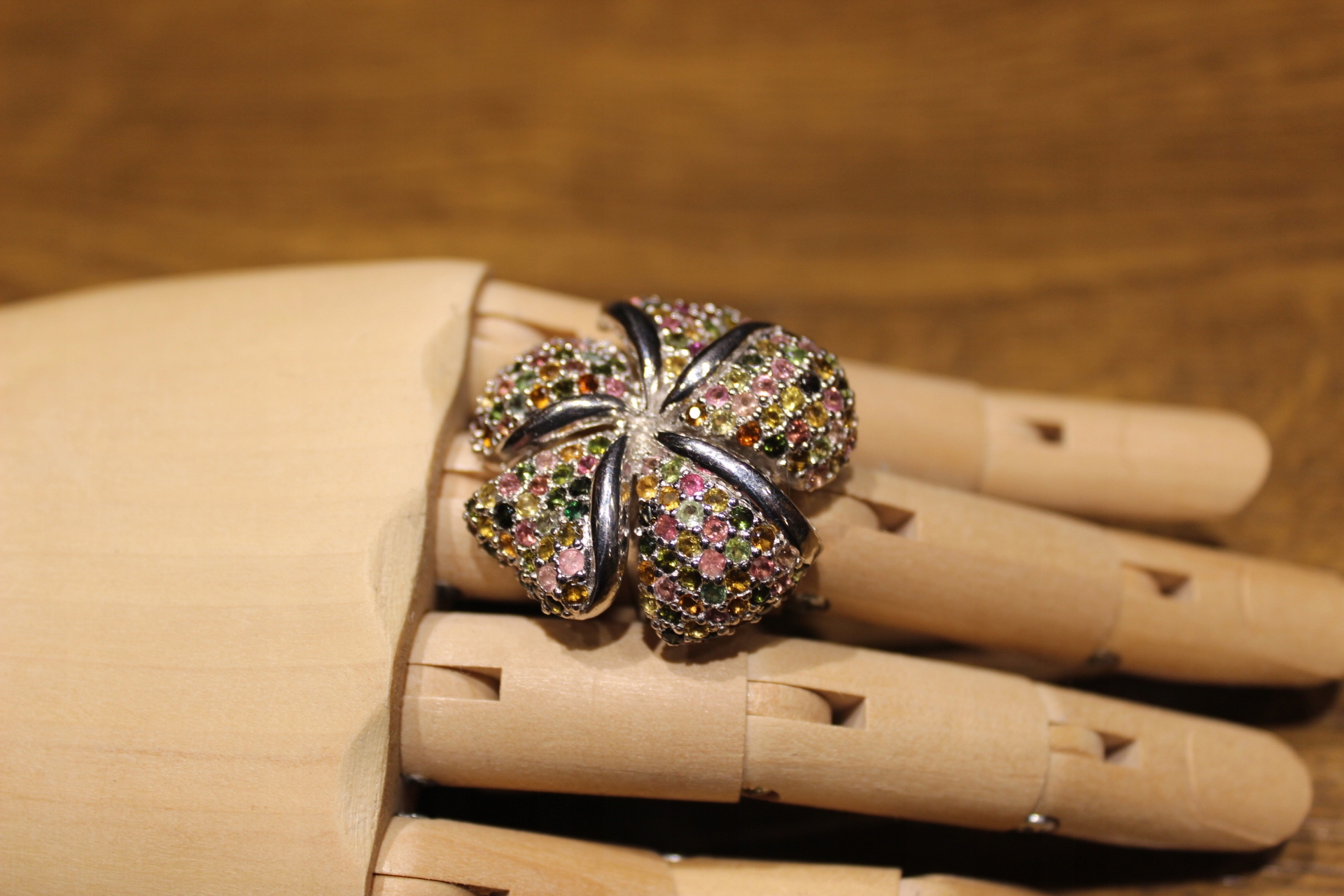 oferujemy Państwu nowy, pozłacany białym 14K złotem srebrny - próba 925 pierścionek z naturalnymi turmalinami.