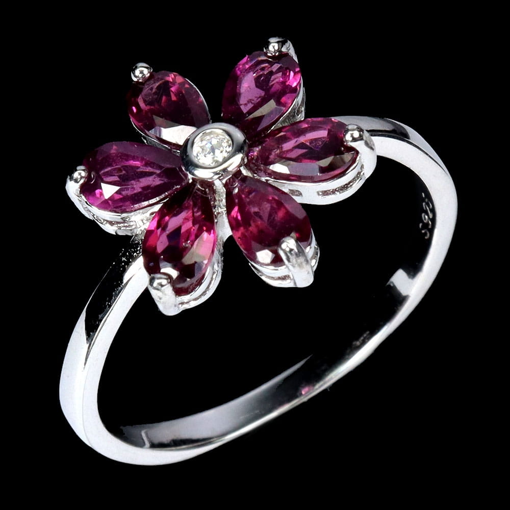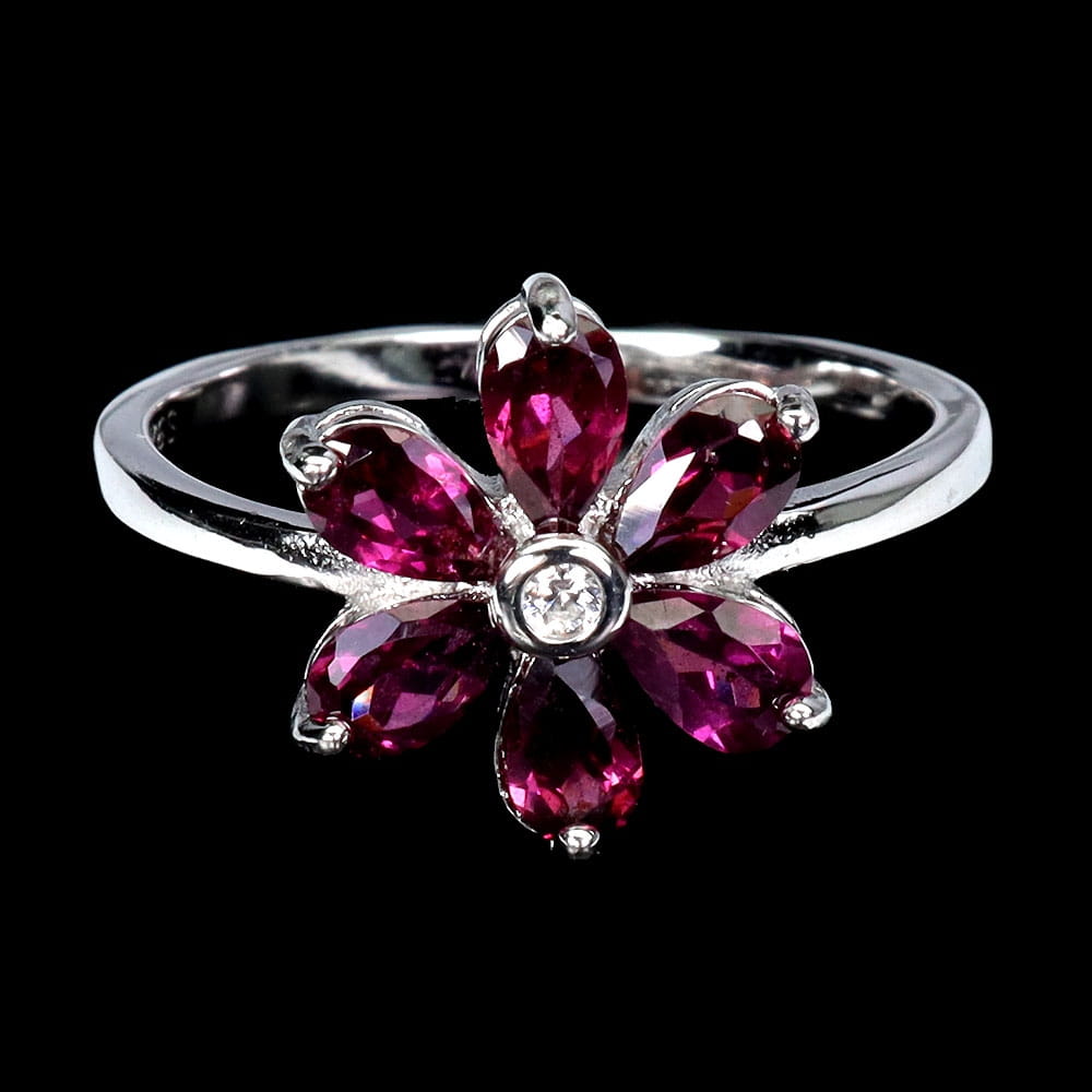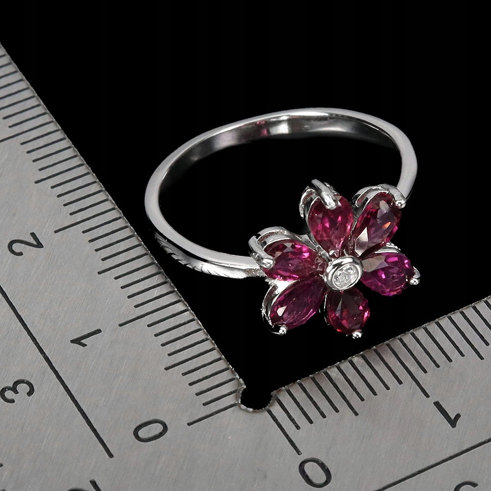 Pierścionek r 14 delikatny srebrny naturalne granaty rodolity kwiat